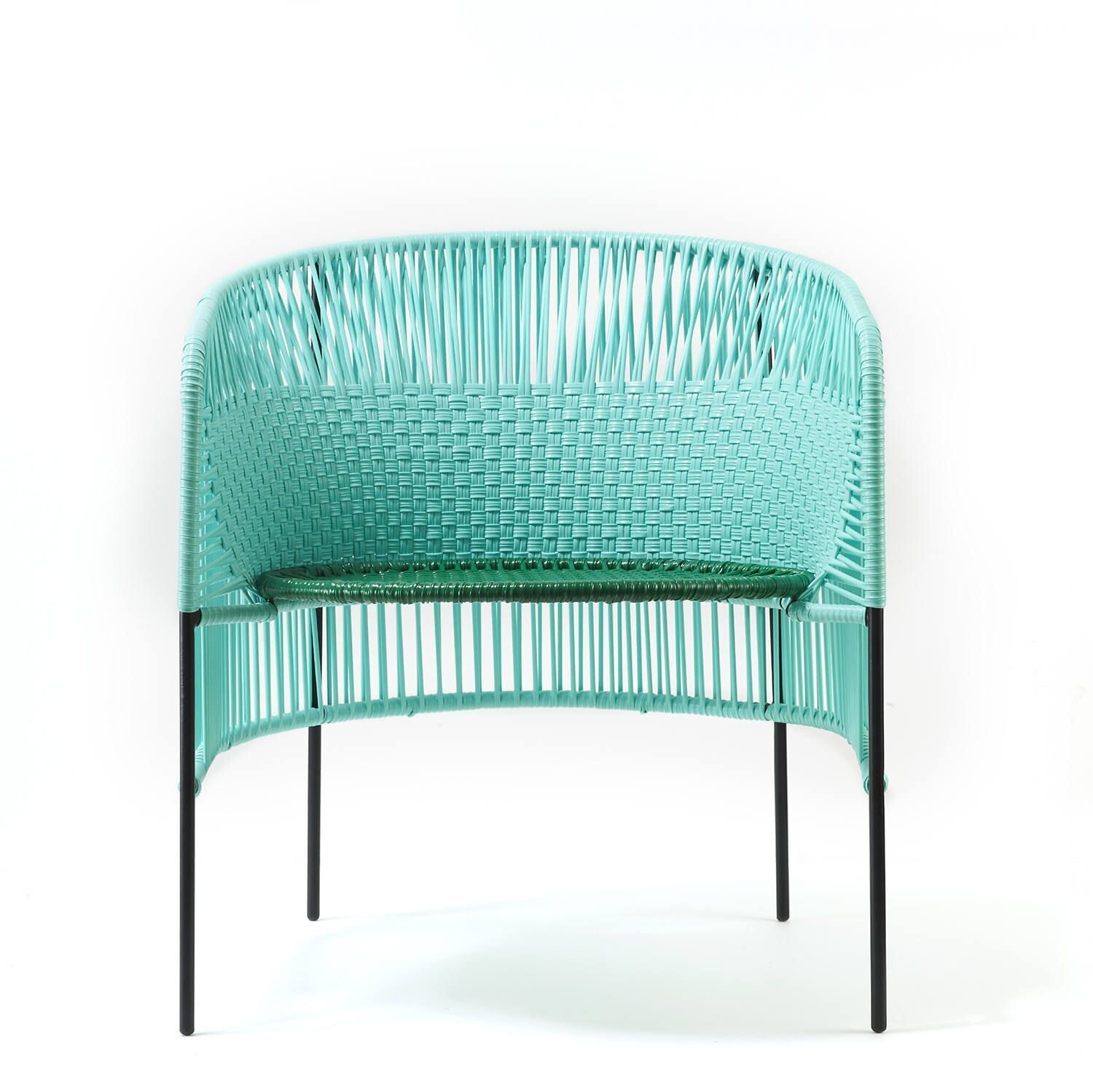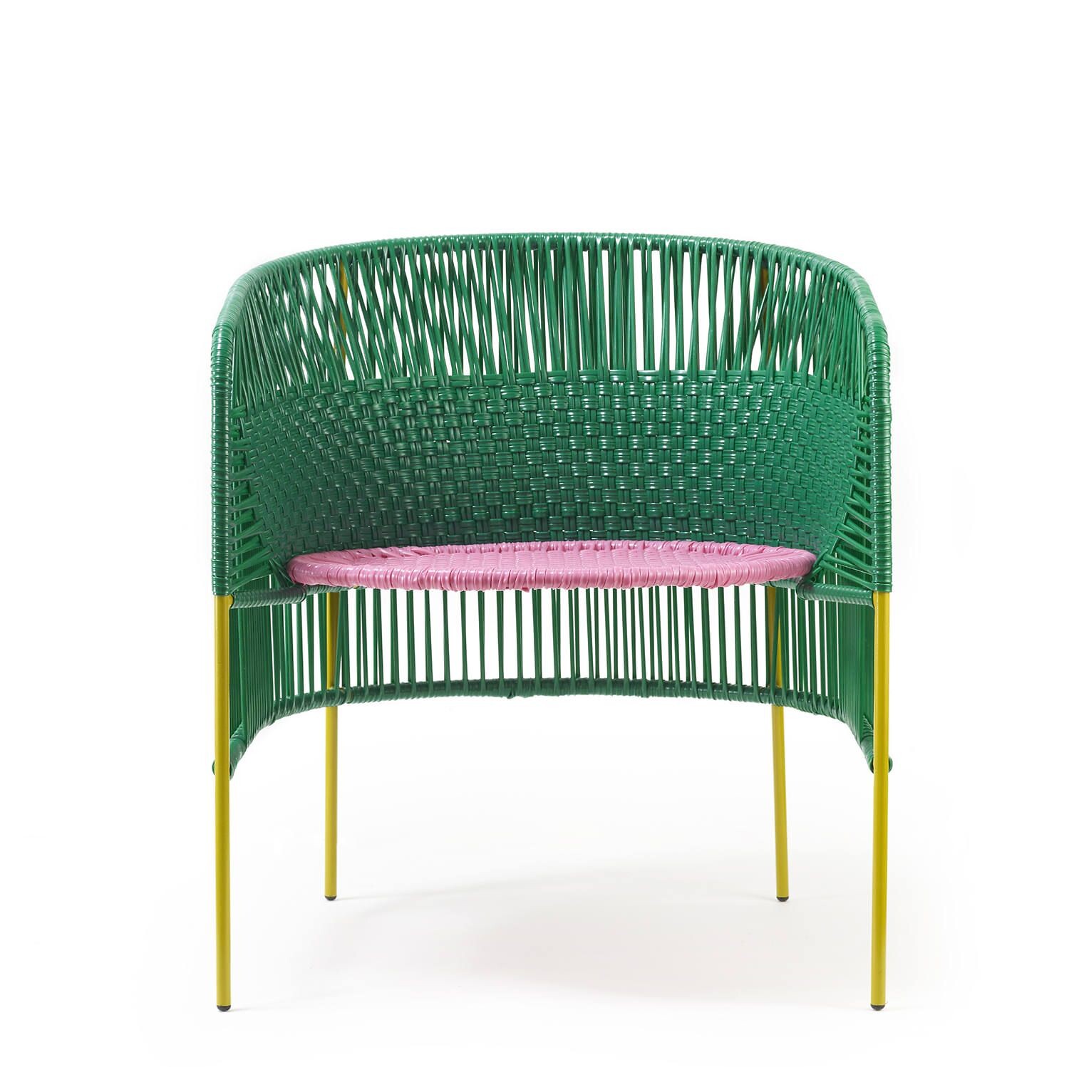 In Santa Marta an der kolumbianischen Karibikküste werden Möbel in der "momposino" Webtechnik hergestellt. Auf dieser Basis hat Sebastian Herkner Caribe entworfen. Jedes Möbel ist handgefertigt. Die Kunststoff-Fäden sind robust und doch flexibel. So ermöglichen sie gemütliches Sitzen und die Farbvielfalt macht gute Laune.