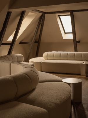 Die Eave Seamline Kollektion von Audo Copenhagen, entworfen von Norm Architects, verbindet architektonische Eleganz mit höchstem Komfort. Die Serie basiert auf dem modularen Eave Sofa und greift dessen markante, weich gerundete Linien auf – ergänzt durch eine fein ausgearbeitete Nahtführung, die Struktur und Raffinesse verleiht.