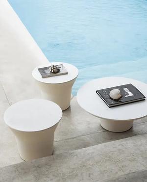 Alle drei Varianten der Springtime Beistelltische vereinen geometrische Formen als Ausgangsbasis. Durch die klaren Linien sind sie vielseitig kombinierbar und strahlen italienische Eleganz aus. Alle Beistelltische bestehen aus dem witterungsbeständigen Material Cristalplant Outdoor®, einem natürlichen Mineralstoff aus Aluminiumhydrat mit Polyesteracrylatharz. Sollte das Material absplittern oder zerkratzen, kann es erneuert werden.
