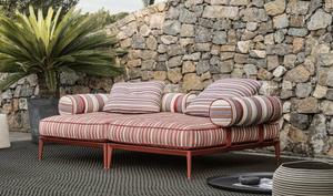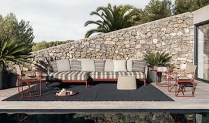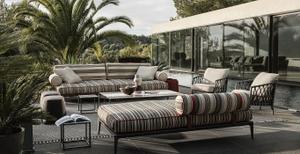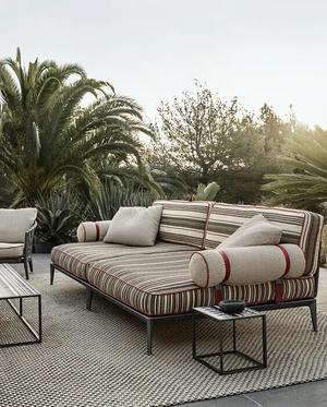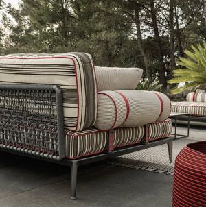 Passend zum Sofa gibt es den Hocker Ribes, der aber auch als Solitär immer eine gute Figur macht.