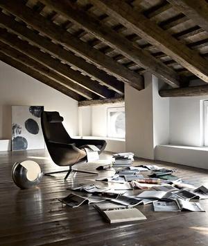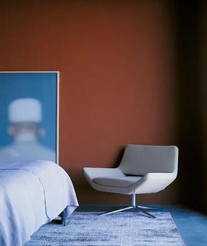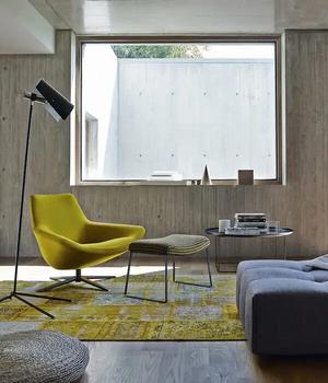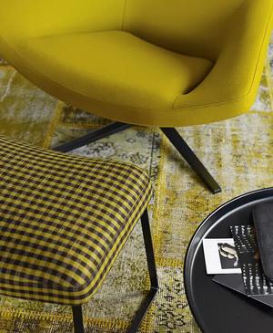 Das Design des Metropolitan '14 Sessels stammt von Jeffrey Bernett. Besonders auffällig sind die fließenden Formen des Polstermöbels, die sich vor allem frontal zwischen Sitzfläche und Armlehnen erkennbar machen.