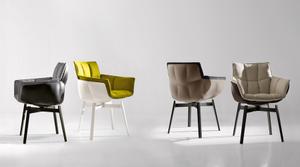 Die unverkennbare Husk-Serie der renommierten Designerin Patricia Urquiola hat Zuwachs bekommen. Auch als drehbarer Esstisch-Stuhl überzeugt die moderne Kombination von Unterbau und gepolsterter Sitzfläche.