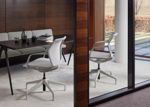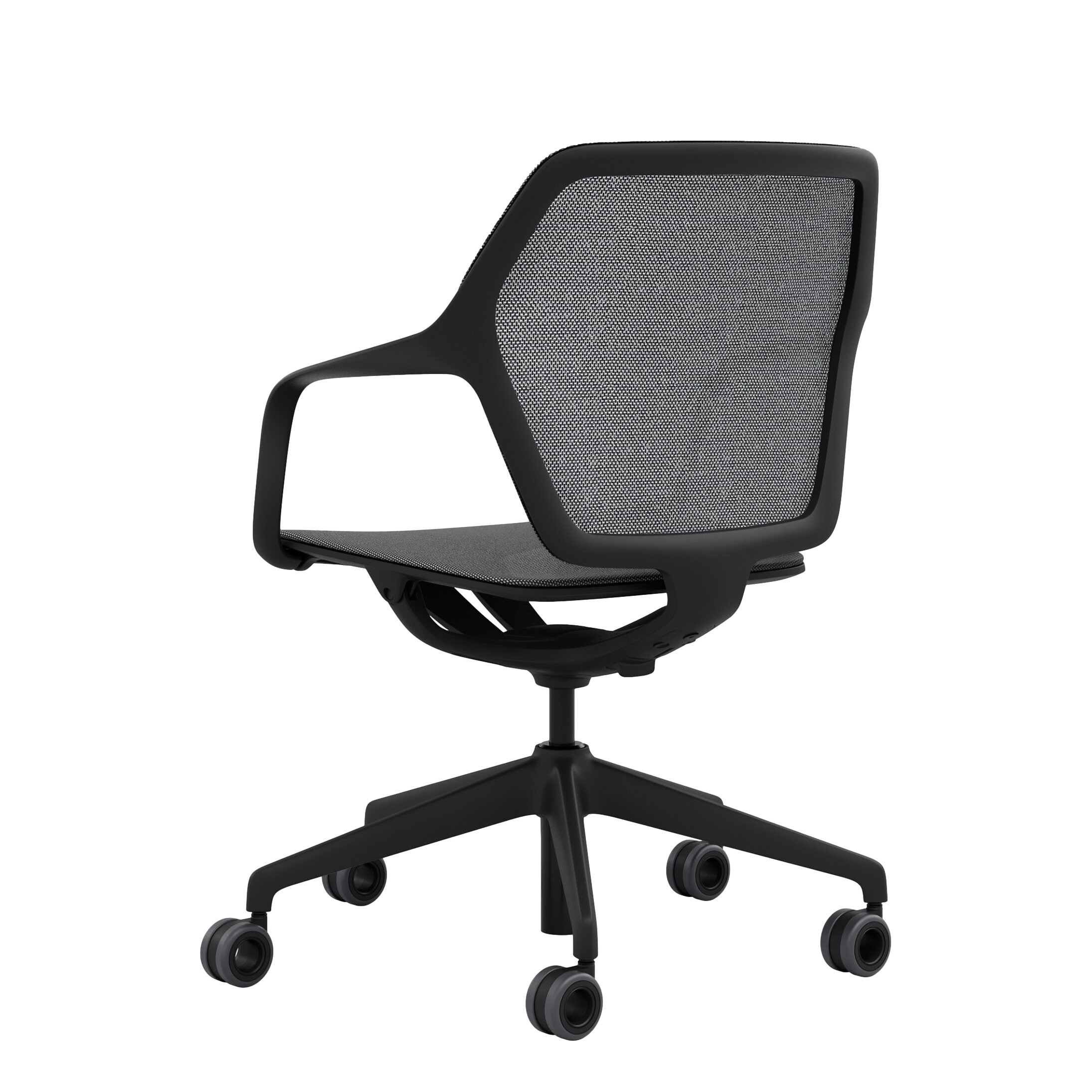 Die Konstruktion kombiniert einen flexiblen Kunststoffrahmen mit einer elastischen Netzbespannung. Dieses ray mesh sorgt für Luftzirkulation und bringt durch den feinen Melange-Effekt eine wohnliche Anmutung ins Büro. Sieben Farbvarianten und mehrere Gestelloptionen – darunter die Ausführung lava aus Recyclingkunststoff – eröffnen Spielraum in der Gestaltung.