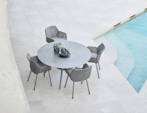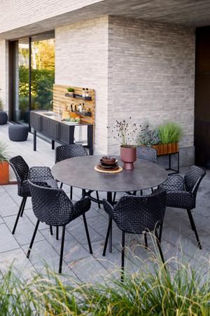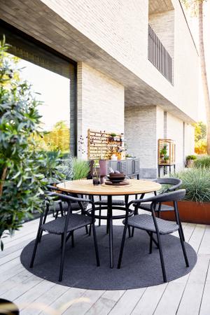 Der Esstisch besticht durch seine eleganten, klaren Linien und seine schlichte, vollendete Formensprache. Die Joy-Serie umfasst eine Kollektion stilvoller Esstische für den Außenbereich. Das Untergestell von Joy verleiht der Serie einen einzigartigen Charakter, wobei die konischen Aluminium-Tischbeine und die geschwungene Form für einen ästhetischen und minimalistischen Look sorgen. Die Tische dieser Serie sind sowohl in runder als auch in rechteckiger Form sowie in dunklen und hellen Farbtönen erhältlich.