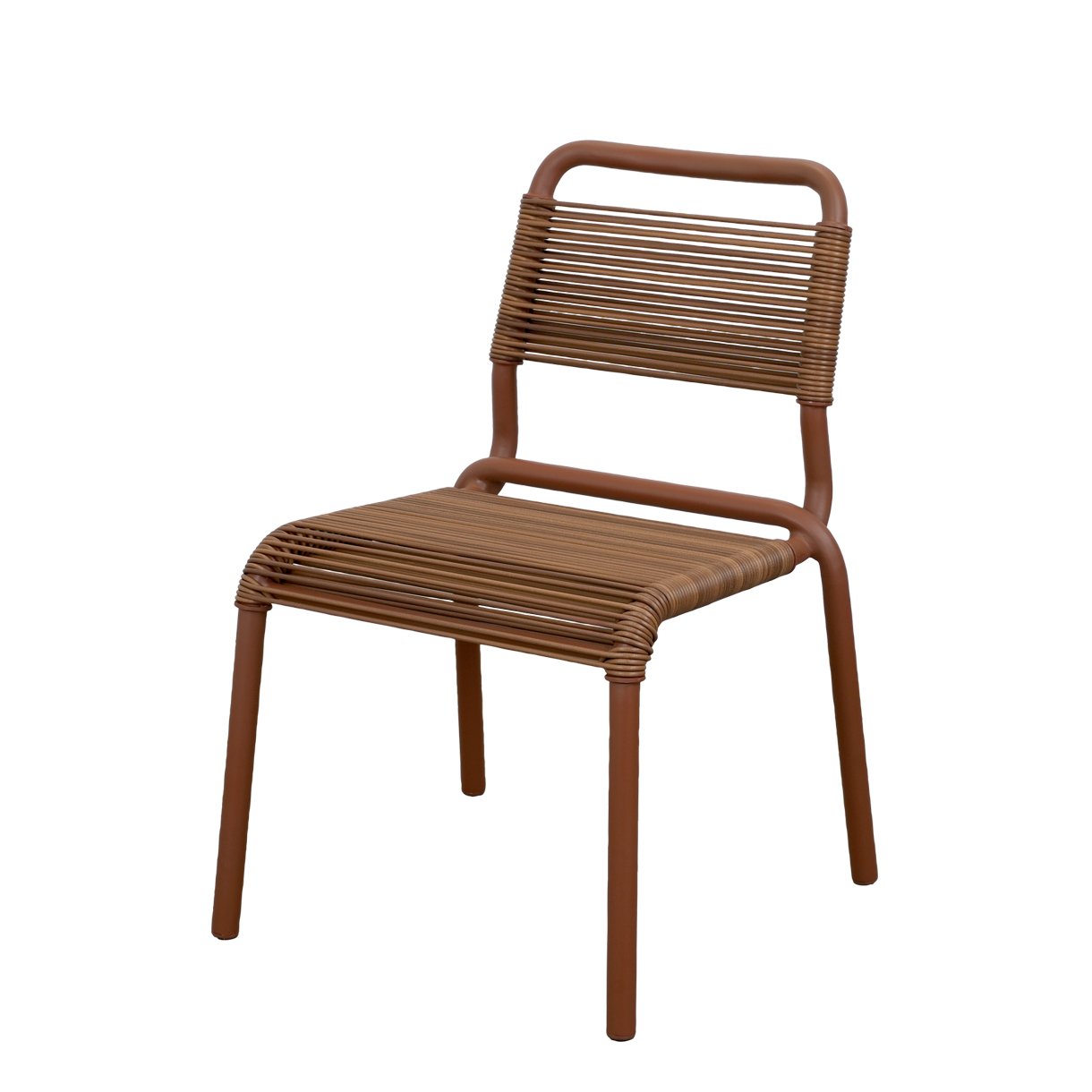Die fein geflochtene Sitz- und Rückenfläche verleiht dem Stuhl eine markante, fast schwebende Optik und sorgt zugleich für angenehmen Sitzkomfort. In Kombination mit dem stabilen, wetterfesten Gestell entsteht ein harmonisches Zusammenspiel aus filigraner Ästhetik und funktionaler Robustheit – ideal für Terrassen, Gärten oder stilvolle Gastronomiekonzepte.