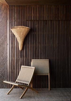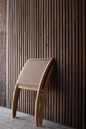 Gurtgeflechte an Sitz- und Rückenfläche sorgen für ein komfortables Sitzgefühl. In zusammengeklapptem Zustand kann der Cuba Chair an der Wand aufgehängt oder in einem Bodengestell gelagert werden.