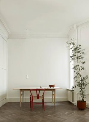 Der Wishbone Chair CH24 seit 2020 in fünf neuen Softfarben erhältlich. Die eleganten Farben heben die Leichtigkeit des Stuhlklassikers besonders hervor.
