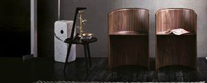 Der Beistelltisch ist in amerikanischem Nußbaum, Esche natur oder Esche schwarz gebeizt erhältlich.
