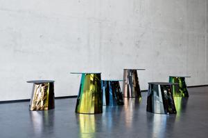 - Tischfuß aus gefaltetem und hochglanzpoliertem Edelstahlblech