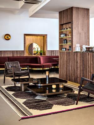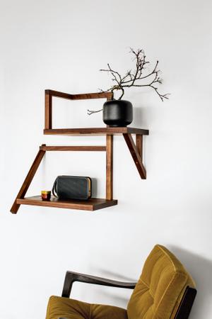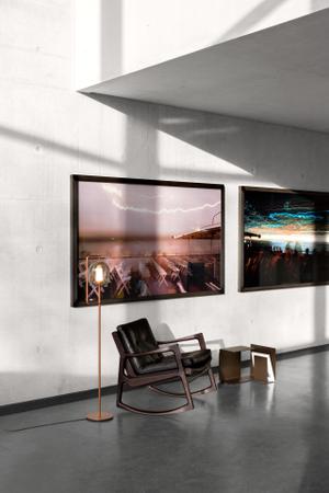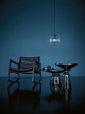 Die kordelbespannten Flächen verleihen dem Sessel besondere Leichtigkeit und lassen vor allem in der Bewegung ein faszinierendes grafisches Linienspiel entstehen. In dunkel gebeizter Eiche mit schwarzer Kordel zeugt er am stärksten von der Herkunft seines Entwerfers. In heller Eiche mit hanffarbener Kordelbespannung wirkt er fast wie ein skandinavischer Möbelklassiker.