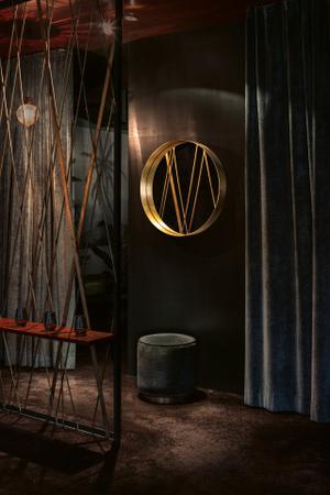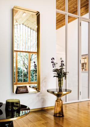 Der umlaufende Messingrahmen wird optisch im Spiegel verdoppelt und erhält dadruch noch mehr Tiefe. In der Frontalansicht ist es allerdings nur eine feine Linie, die den Spiegel umrandet. Trotz der Anmutung eines vergangenen Jahrzehnts ist Cypris äußerst zeitgemäß und bietet zugleich einen funktionalen Nutzen.
