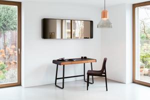 An der Wand hängend dient der großzügige Rahmen auch als Abstellfläche für diverse Kleinteile wie Kosmetika oder Dekorationen. Diese erhalten somit einen perfekten Rahmen zur Inszenierung. Ein flexibler Einsatz ob im Badezimmer, der Ankleide, in der Garderobe oder im Eingangsbereich ist möglich. Er kann sowohl horizontal als auch vertikal gehängt werden oder aber auch an die Wand gelehnt bestehen.
