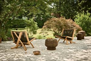 Auch beim Material gilt die klare Trennung nach Einsatzbereich: Die Indoor-Version wird aus massivem Eichenholz gefertigt, die Outdoor-Variante aus Robinie. Beide Hölzer bringen ihre spezifischen Eigenschaften mit und sind auf ihren jeweiligen Einsatz abgestimmt. Die Bespannung aus strapazierfähiger Kordel bildet die Sitzfläche und sorgt für Komfort bei gleichzeitig zurückhaltender Anmutung.