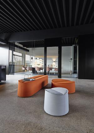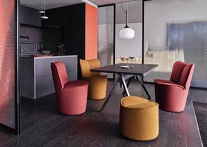 „Seerose“ ist das spanische Wort für Nenufar, welches als Inspiration für die Nenou-Serie diente. Die blattförmigen Polster-Elemente dieses Konzepts gruppieren sich im Raum so natürlich wie Seerosen in einem Teich und schaffen dabei immer wieder neue Formen. Auch in den Details spiegeln die Sessel, Hocker und Poufs, die Designer Jörg Boner gemeinsam mit COR entworfen hat, die Form von Blättern wider. Sie haben umlaufende Fahnen und mittige Vertiefungen, die nicht nur den Sitzen zusätzlichen Komfort geben, sondern auch den eleganten Tabletts aus Holz und Stein perfekten Halt bieten.