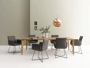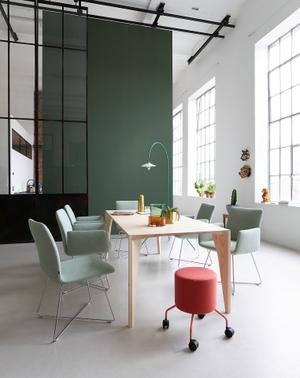 Der Jalis Stuhl von COR, gestaltet von Jehs + Laub, besteht aus einem aufwendig gepolsterten Sitzkörper, der an ein weich gefaltetes Kissen erinnert – kombiniert mit einem klaren Draht- oder Vierfußgestell aus Aluminium. Trotz seiner Form wirkt Jalis komfortabel und einladend und bietet durch seine leicht federnde Rückenlehne eine angenehme Sitzdynamik. Er ist in Stoff oder Leder erhältlich, mit kontrastfarbenen Steppnähten optional, und wahlweise mit schwarzem oder verchromtem Untergestell lieferbar. Der drehbare Jalis (mit 4‑ oder 5‑Stern-Gestell, auch mit Rollen) bietet 360° Bewegungsfreiheit. Jalis bringt warme Eleganz ins Esszimmer, Büro oder Lounge und verbindet klare Linien mit hohem Sitzkomfort.