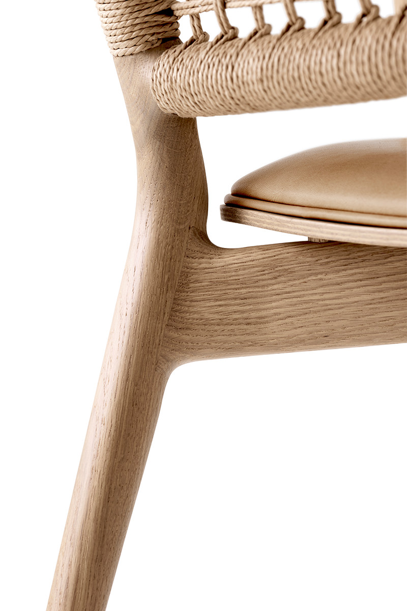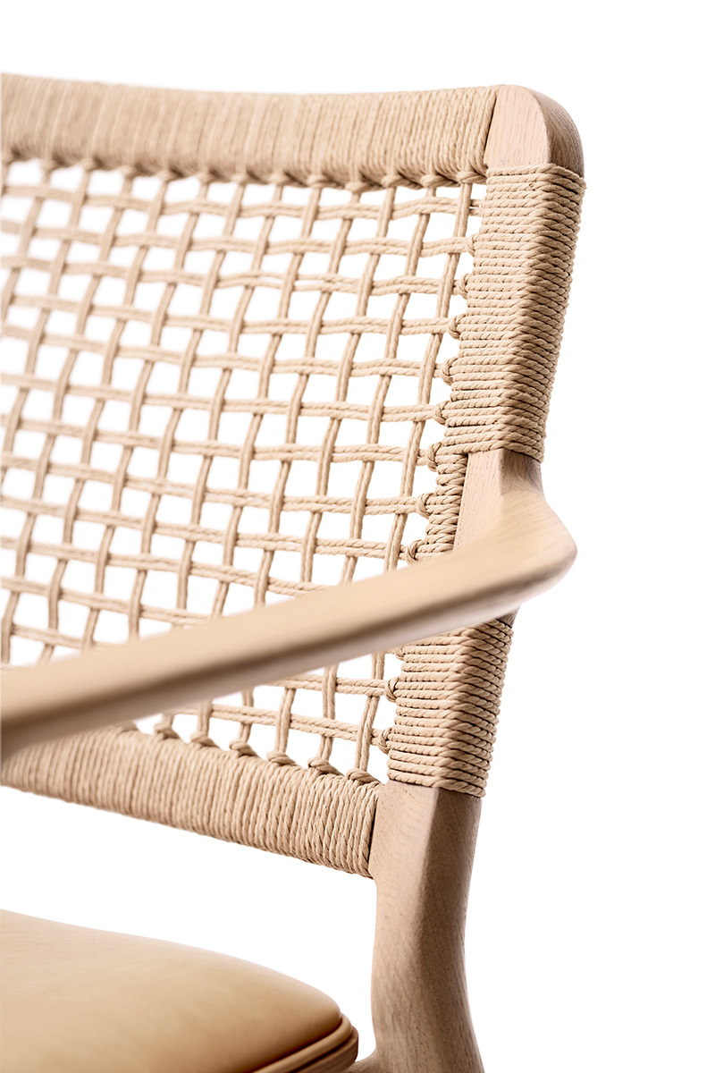Der Cabin Lounge Chair verkörpert Vipps unverwechselbare Interpretation eines Loungesessels. Inspiriert von der reichen dänischen Designgeschichte, greift er auf traditionelle Elemente wie den Holzrahmen und die Rückenlehne aus handgeflochtener Papierkordel zurück. Dabei hebt er die bewährte Handwerkskunst hervor, die auch bei anderen dänischen Designklassikern zu finden ist. Diese zeitgemäße Interpretation bietet eine gekonnte Mischung aus Moderne und Klassik, die den Wohn- oder Loungebereich mit zeitloser Eleganz bereichert.