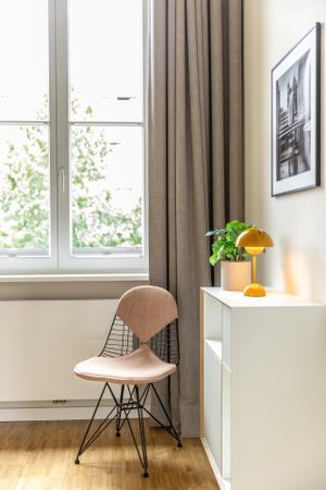 Durch ihr farbenfrohes Aussehen und das abgerundete Pendel, welches am halbgewölbten Schirm hängt, verkörpert die VP9 die experimentelle Haltung von Verner Panton.