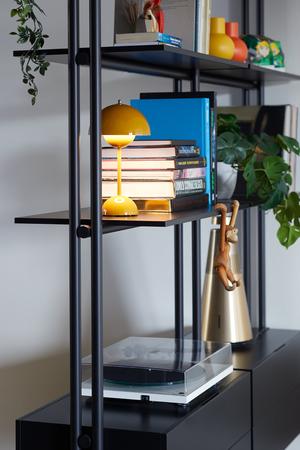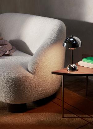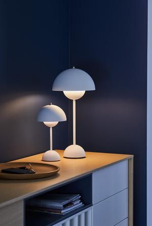 Etwas keiner als die Tischlampenversion und bewusst leichtgewichtig, ist die tragbare VP9 mit einem USB-Ladekabel ausgestattet. Die Akkuleuchte ist in einer großen Auswahl an zeitgenössischen Farben erhältlich und schafft eine gemütliche Atmosphäre in Innen- und Außenbereichen.