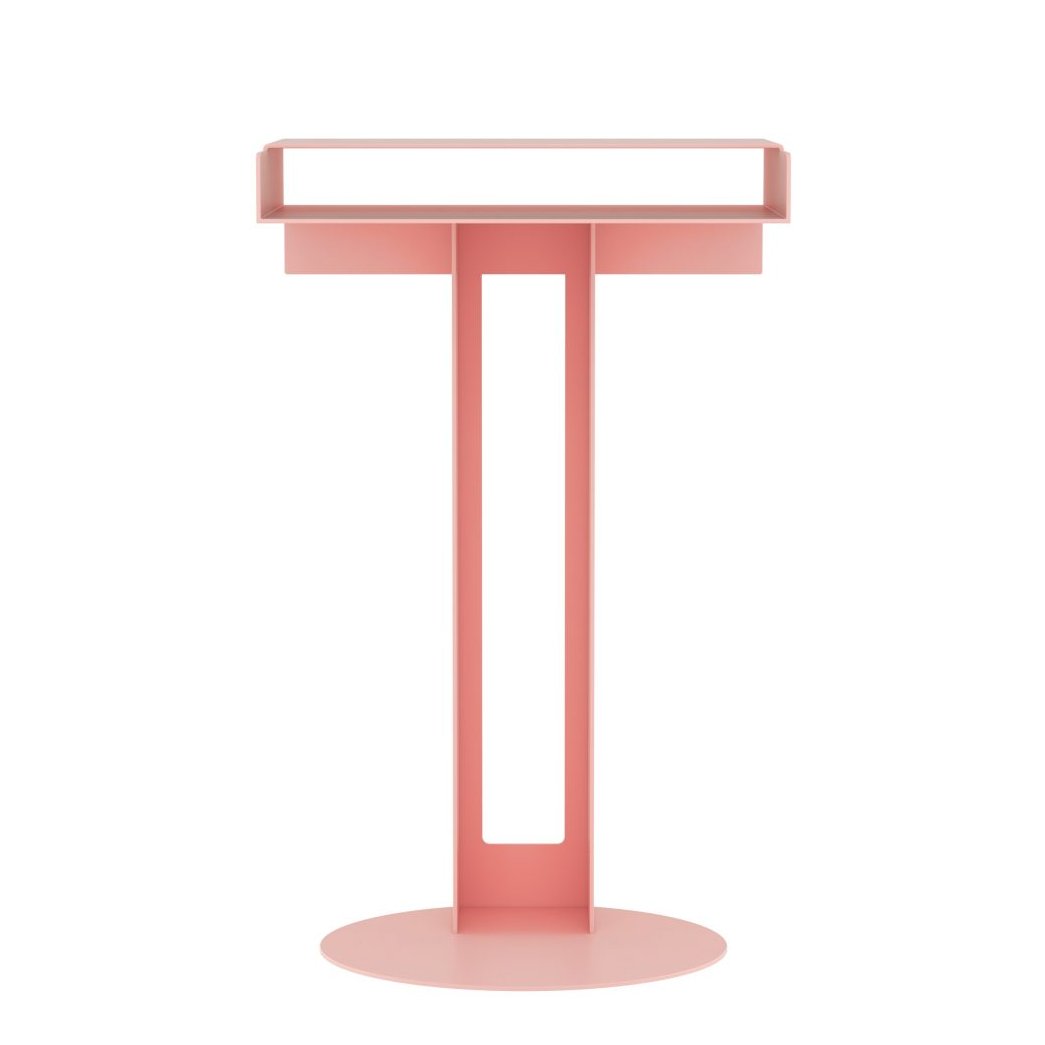 Der Meta Beistelltisch besticht durch sein einzigartiges Design. Er besteht aus einer harmonischen Anordnung pulverbeschichteter rechteckiger und kreisförmiger Elemente, die je nach Blickwinkel eine filigrane oder massive Erscheinung haben.