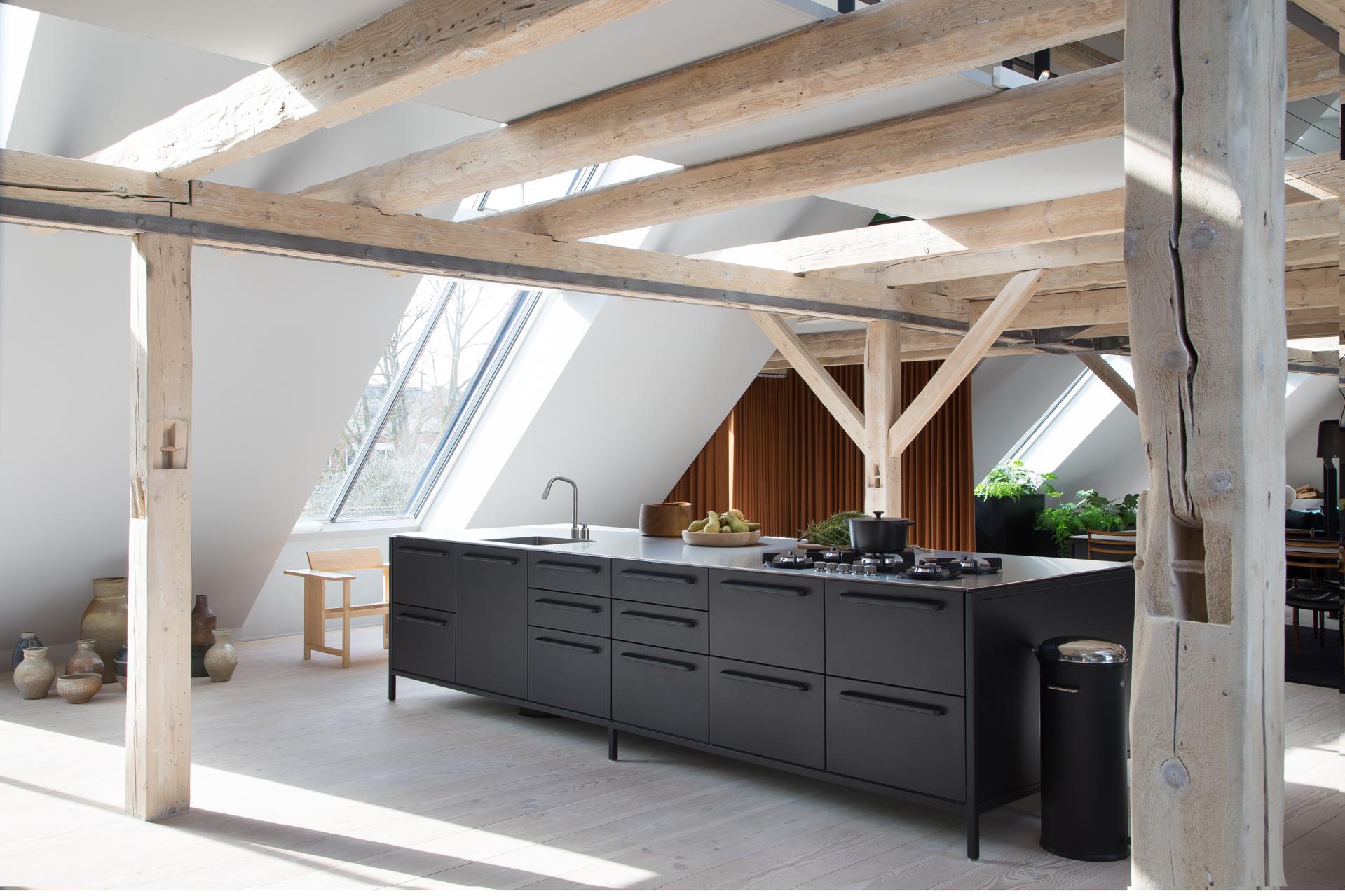 Eine Küche, die ein Leben lang halten soll. Die Vipp V1 Küche basiert auf einem modularen Konzept. Sie lässt sich wie aus Bausteinen zusammensetzen. Es gibt vier Module für die Vipp Kitchen: Inselmodul, Inselmodul mit Sitzplätzen, Wandmodul oder Hochmodul.