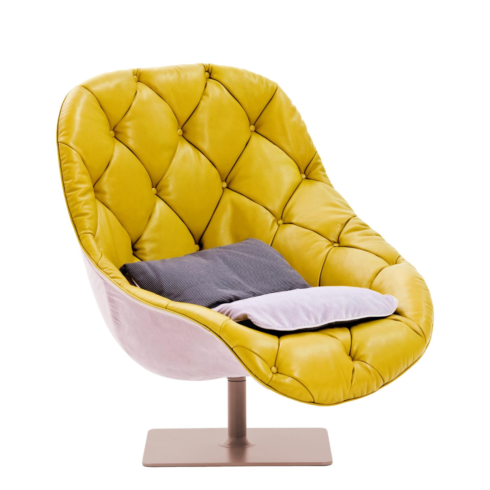 - Sessel 001 - Bezug Leder Z gelb - Gestellfarbe concrete ohne zusätzl. Sitzkissen