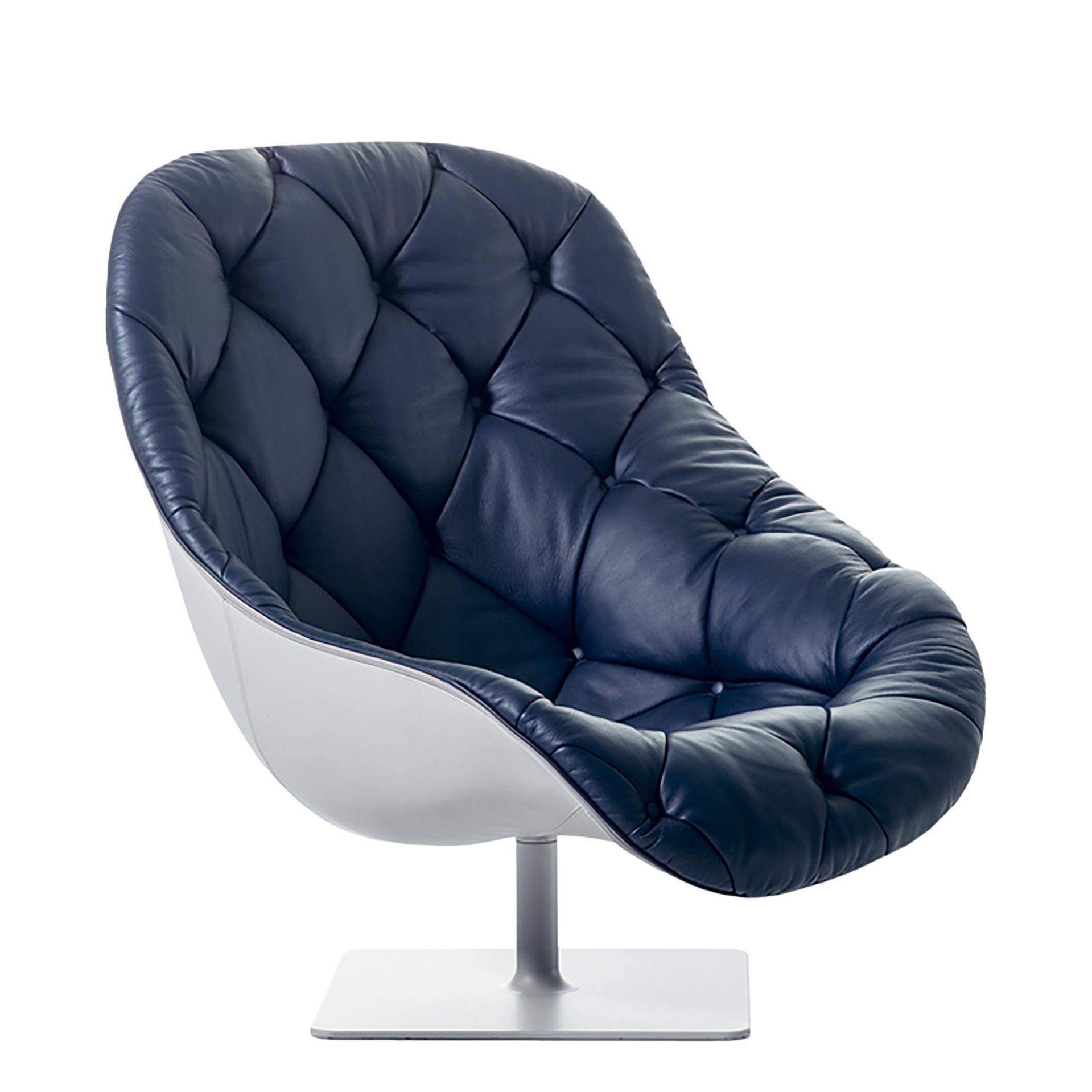 Der Loungesessel ist das Highlight der Kollektion, mit großzügiger Sitzfläche und fließenden Linien, die höchsten Komfort bieten und zugleich einen skulpturalen Blickfang bilden.