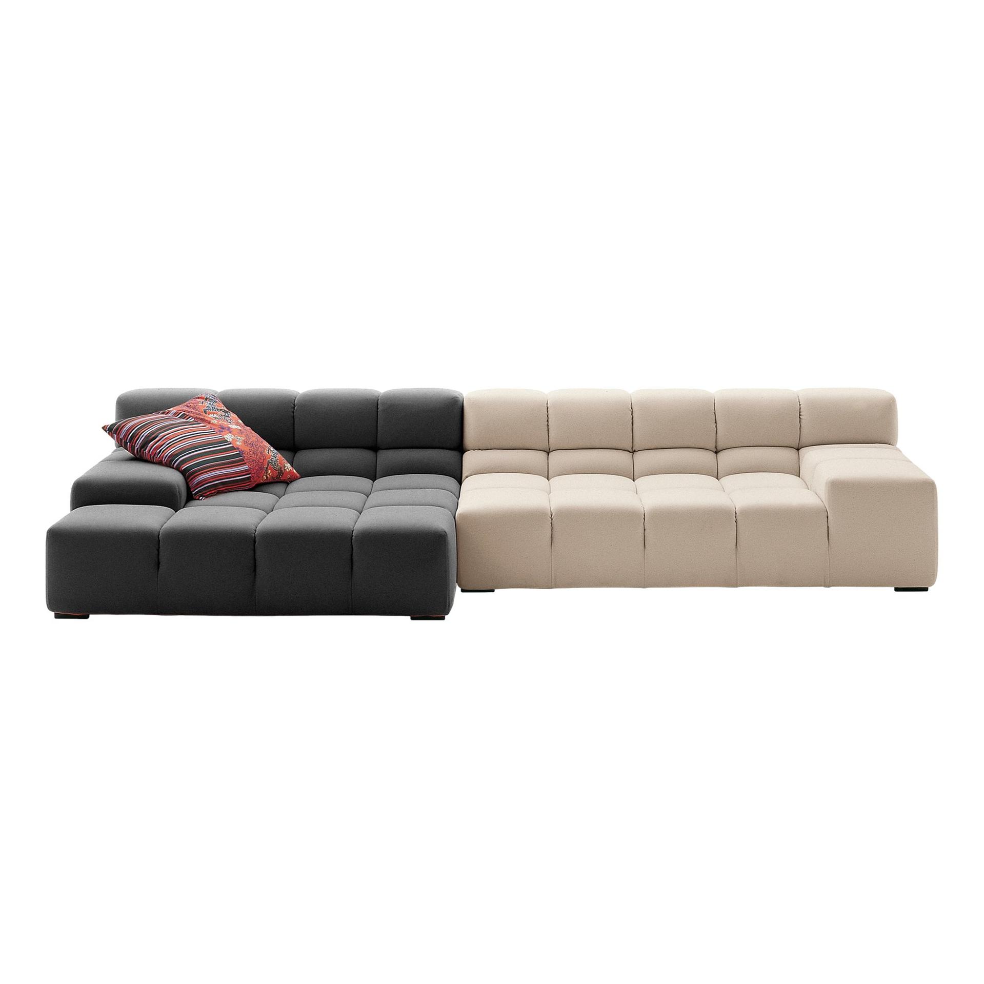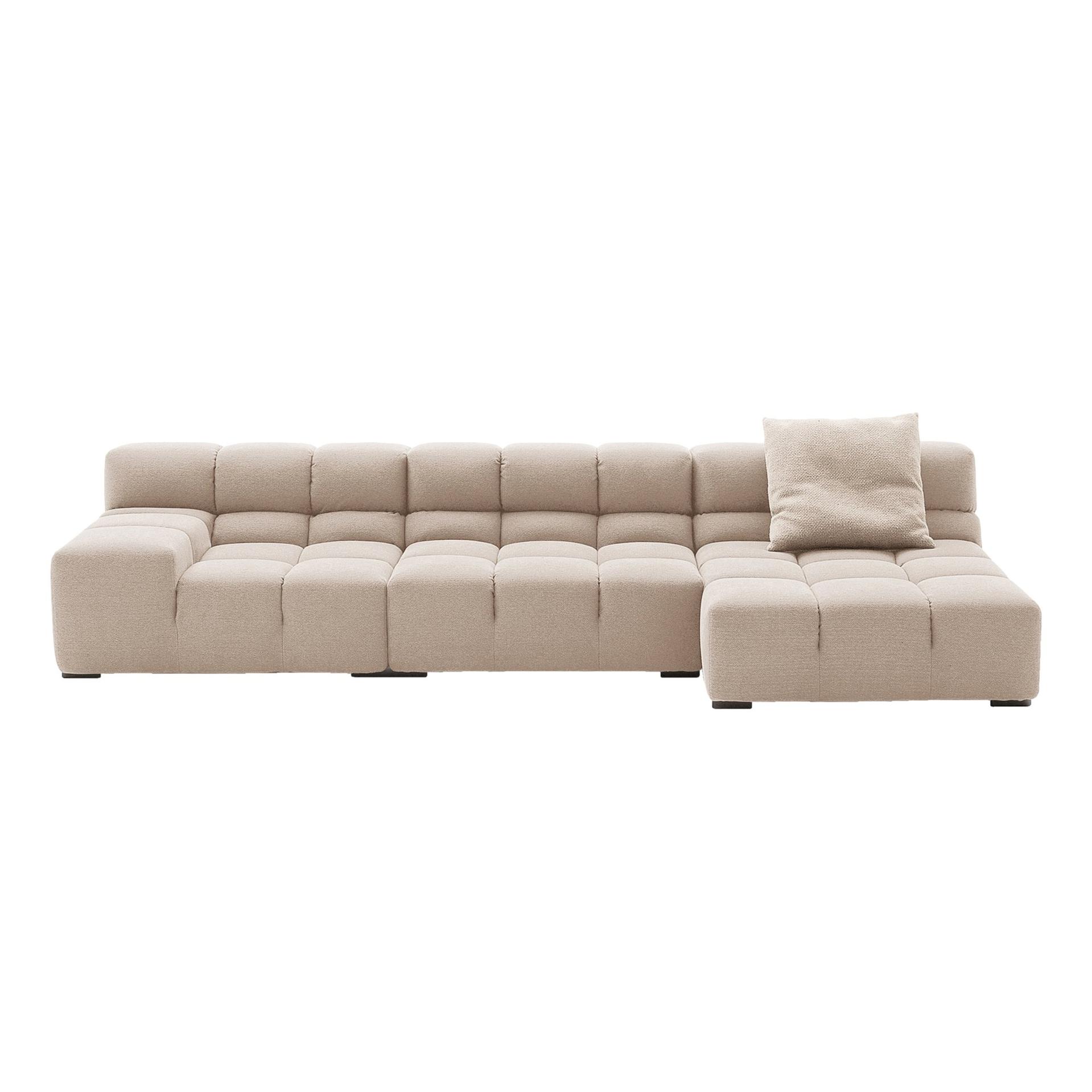 Die Tufty-Time Sofaserie von B&B Italia gehört zu den größten Erfolgen der Marke und überzeugt durch ihre Vielseitigkeit, ihren Komfort und die Möglichkeit, die Bezüge abzunehmen. Das modulare Design beginnt mit einer Ottomane als Basis, die sich durch Mittel-, Eck- und Abschlusselemente erweitern lässt – mit hoher oder niedriger Armlehne, ganz nach Bedarf. So entstehen klassische Sofas, Modelle mit Chaiselongue, Ecksofas oder großzügige Inseln, die vielseitige Sitzlösungen bieten.