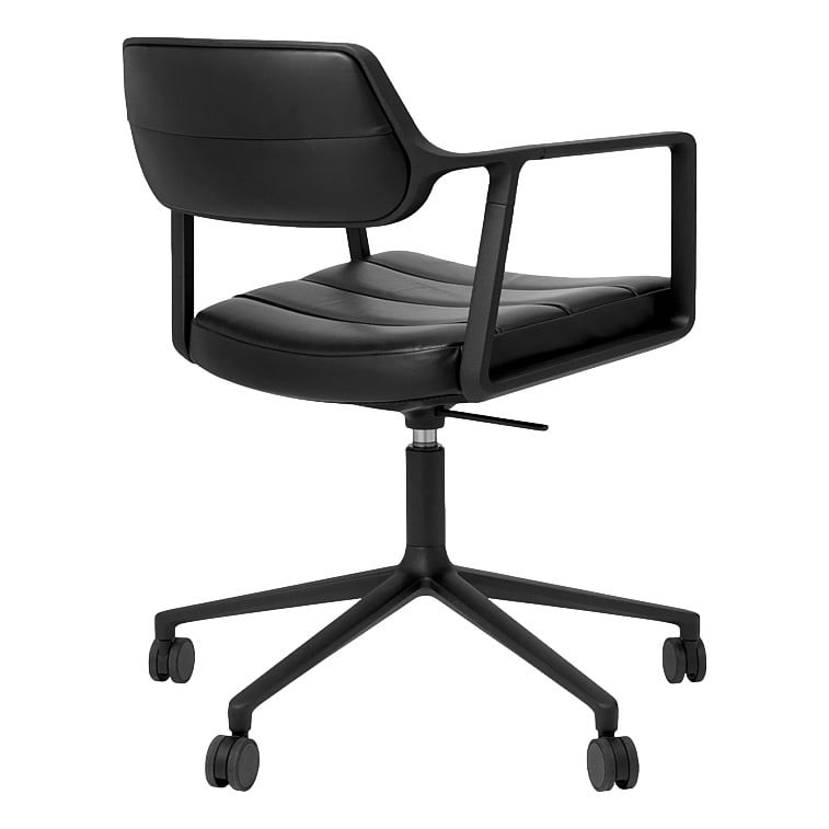 Der höhenverstellbare Sitz des Swivel+ mündet in einem stabilen Fünf-Sterne-Fußgestell, das entweder mit Rollen oder Bodengleitern erhältlich ist und volle 360° Drehbarkeit ermöglicht. Mit seinem stilvollen und funktionalen Design fügt sich der Vipp Swivel+ Chair perfekt in jedes moderne Arbeitsumfeld ein – für ein komfortables und produktives Sitzgefühl den ganzen Tag über.