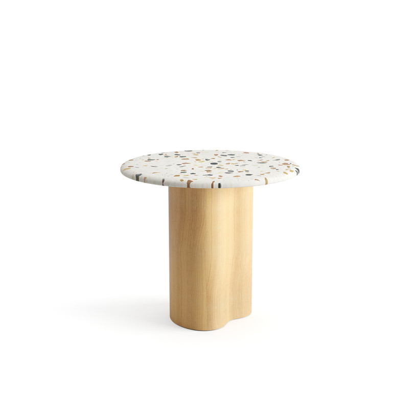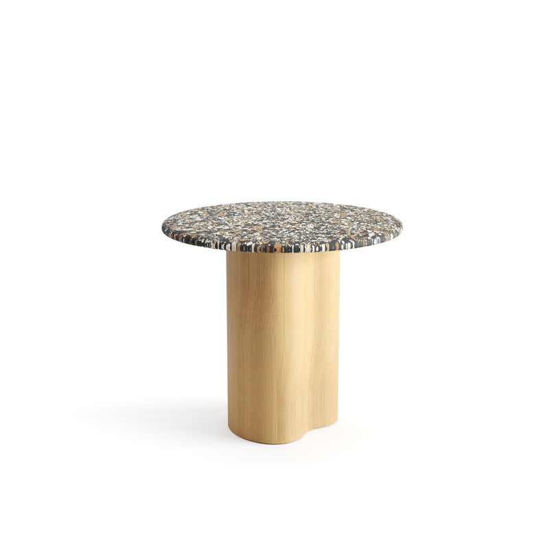 Der Beistelltisch Ghia von Arper überzeugt durch sein minimalistisches Design und die markante Terrazzo-Platte.
