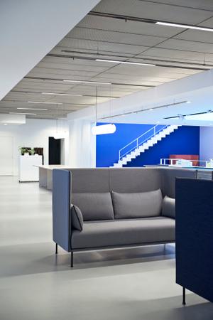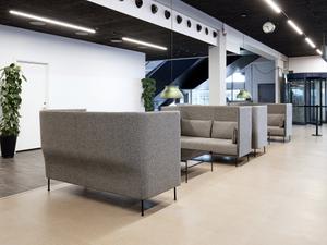 Aus großen Büroflächen sind die Highback-Versionen der Sofas nicht mehr wegzudenken. Denn sie schaffen gegenübergestellt auf wenig Fläche einen Ort für ungestörte Gespräche. Gleichzeit ist die große stoffbezogene Rückwand akustisch wirksam.