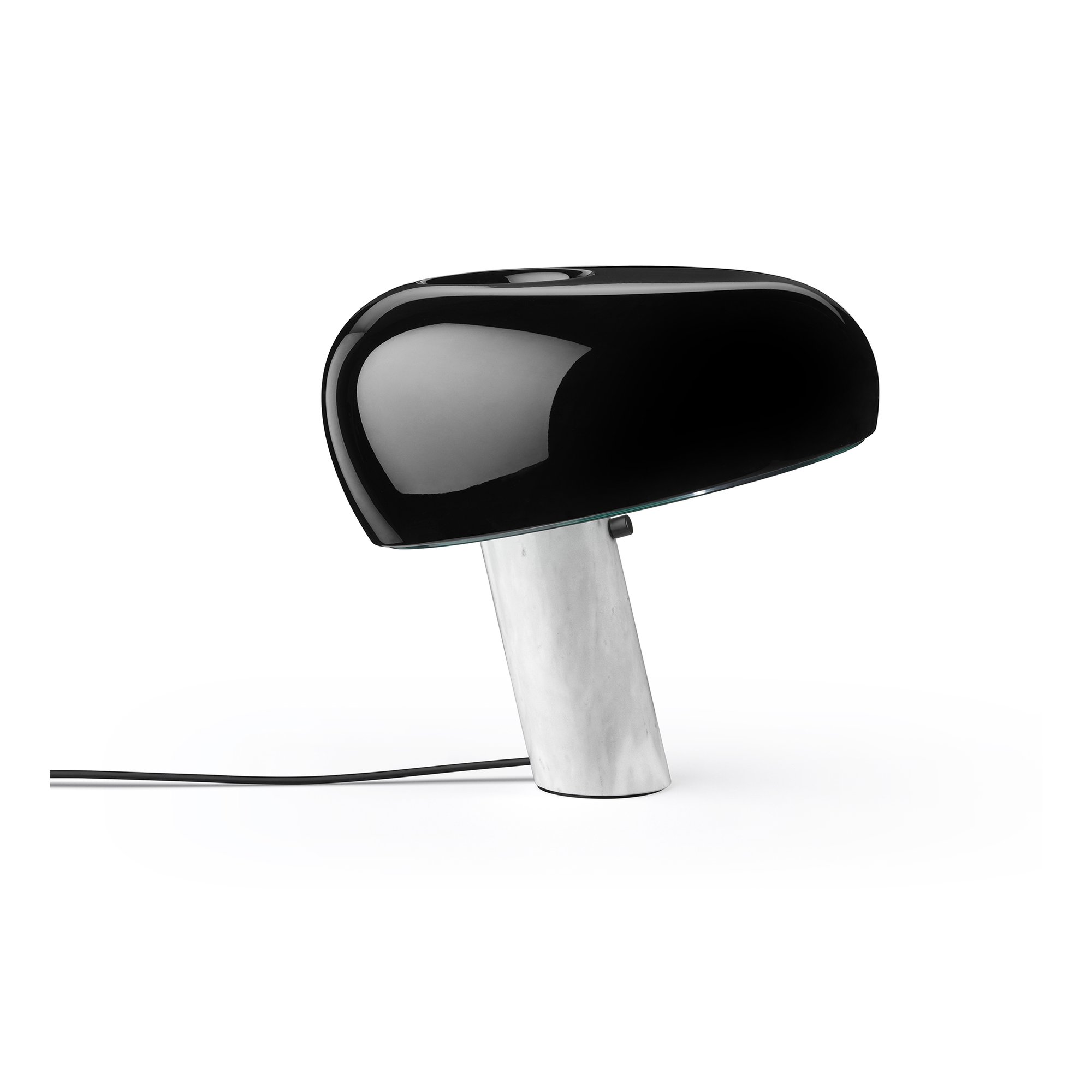 Die Tischleuchte Snoopy sorgt für direktes Licht mit lackiertem Sockel und weißem Marmorfuß.