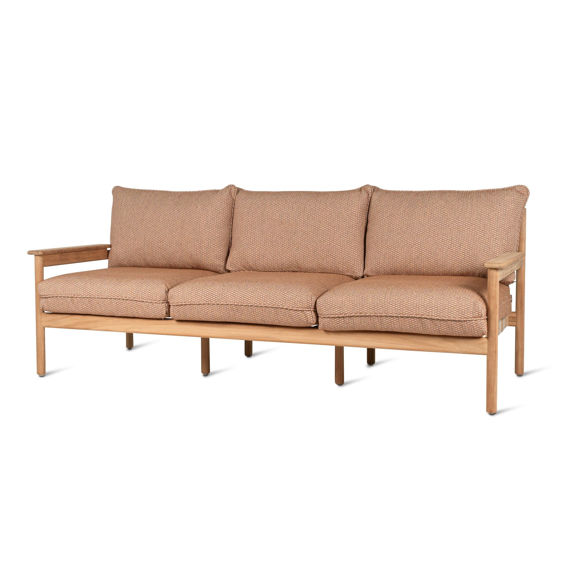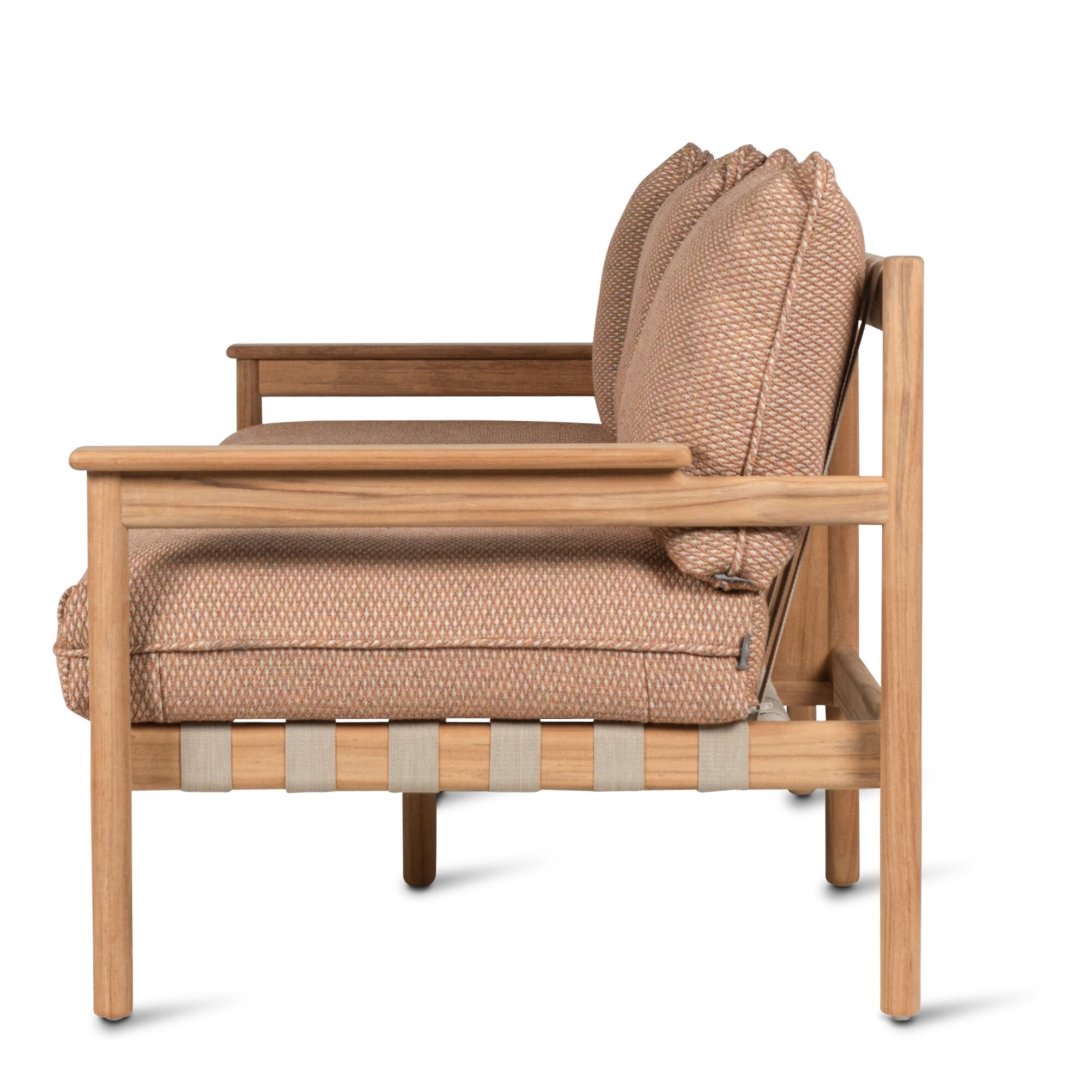 Das Oda Sofa von Vincent Sheppard kombiniert lässige Eleganz mit maximalem Outdoor-Komfort. Die großzügige Sitzfläche und die angenehm geneigten Rückenlehnen laden dazu ein, den Sommer in vollen Zügen zu genießen. Das stabile Gestell aus massivem Teak verleiht dem Sofa eine warme, natürliche Ausstrahlung. Die schlichte, klare Formensprache macht Oda zu einem vielseitigen Begleiter für Terrasse, Garten oder Poolbereich. Hochwertige Polster sorgen für zusätzlichen Komfort und runden das Design perfekt ab.