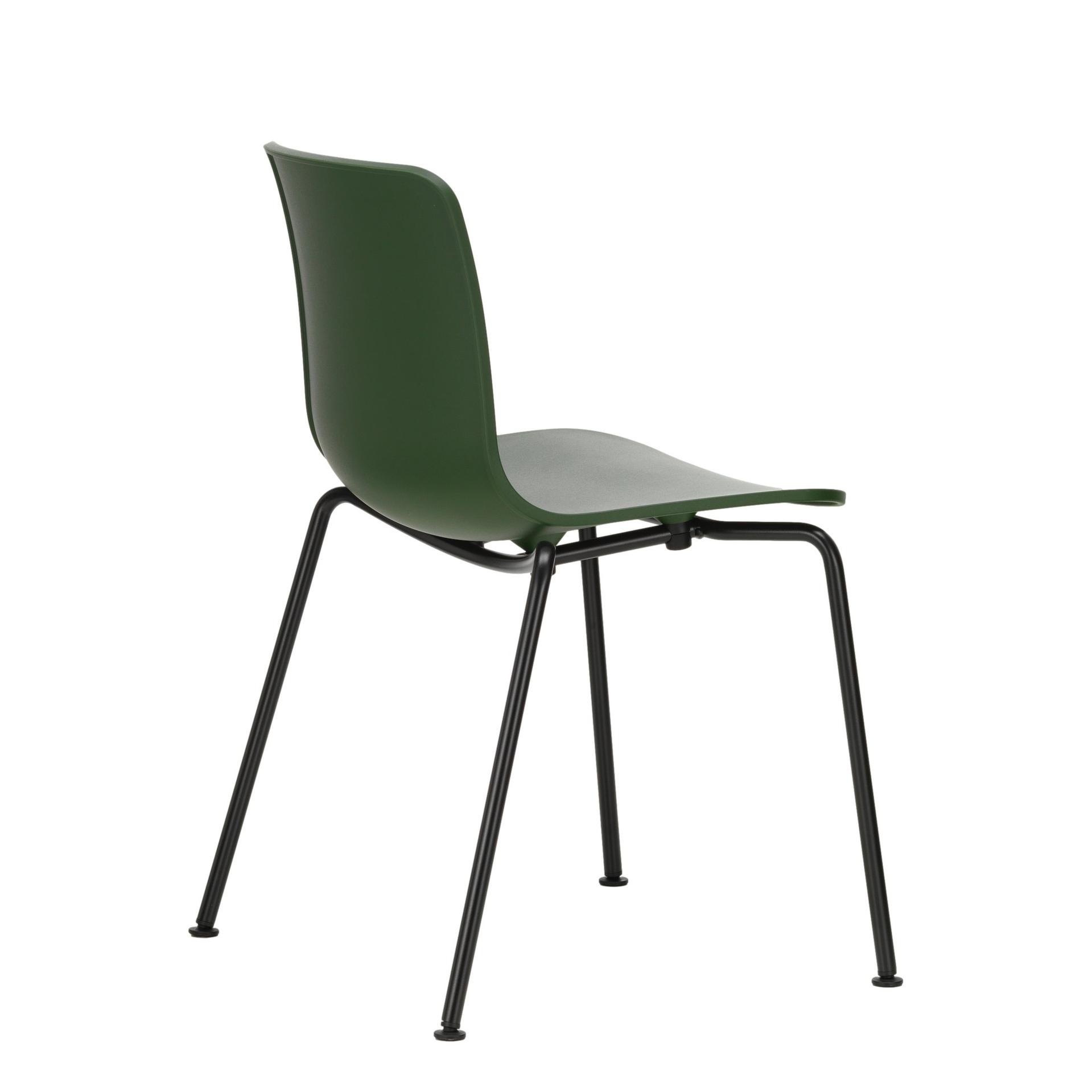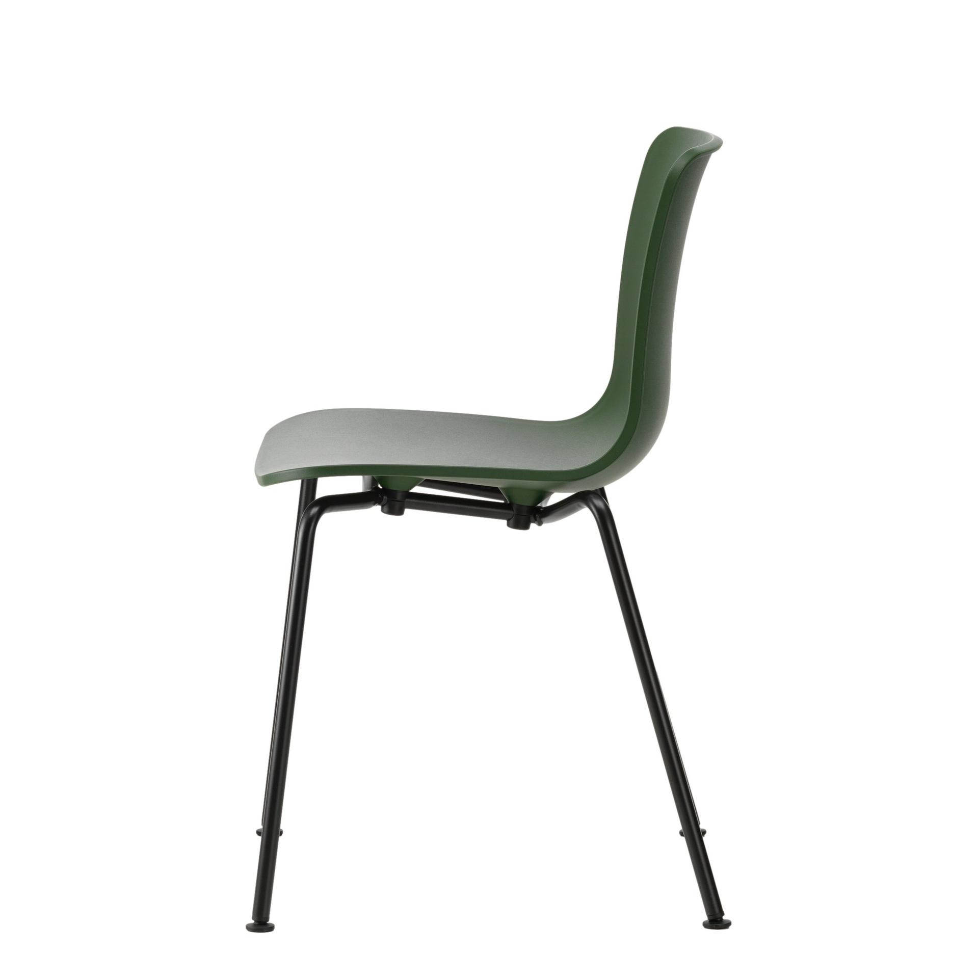 Die ergonomisch geformte Sitzschale besteht beim Hal RE aus recyceltem Kunststoff und vermittelt ein leicht federndes Sitzgefühl. In der stapelbaren Variante mit Rohrgestell ist der Stuhl besonders für den flexiblen Einsatz in öffentlichen und privaten Bereichen geeignet – ob in Besprechungsräumen, Kantinen oder größeren Wohnküchen.