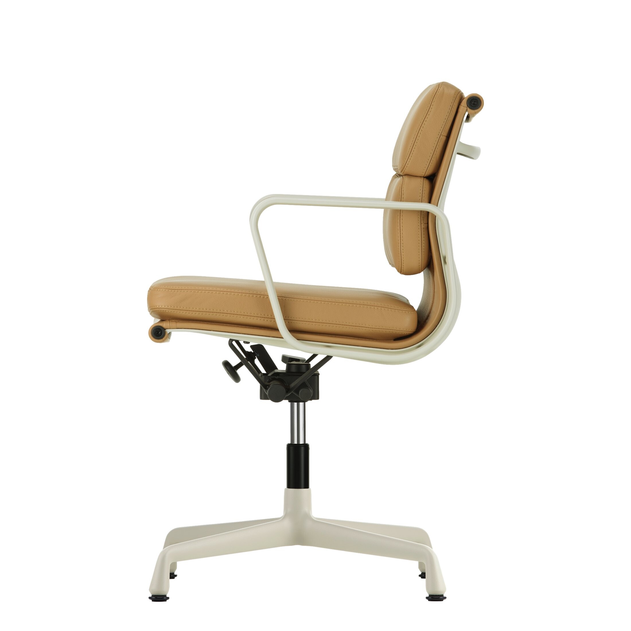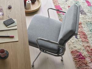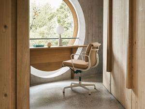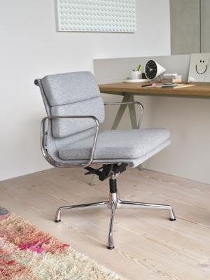 Die Konstruktion aus Aluminium sorgt für Stabilität und Leichtigkeit. Vitra fertigt die Gestelle inzwischen aus bis zu 95 % recyceltem Aluminium. Zusammen mit der großen Auswahl an hochwertigen Bezügen lassen sich die Soft Pad Chairs flexibel an verschiedene Umgebungen anpassen – vom Homeoffice über Besprechungsräume bis hin zu repräsentativen Arbeitsplätzen.