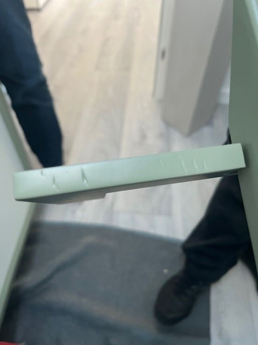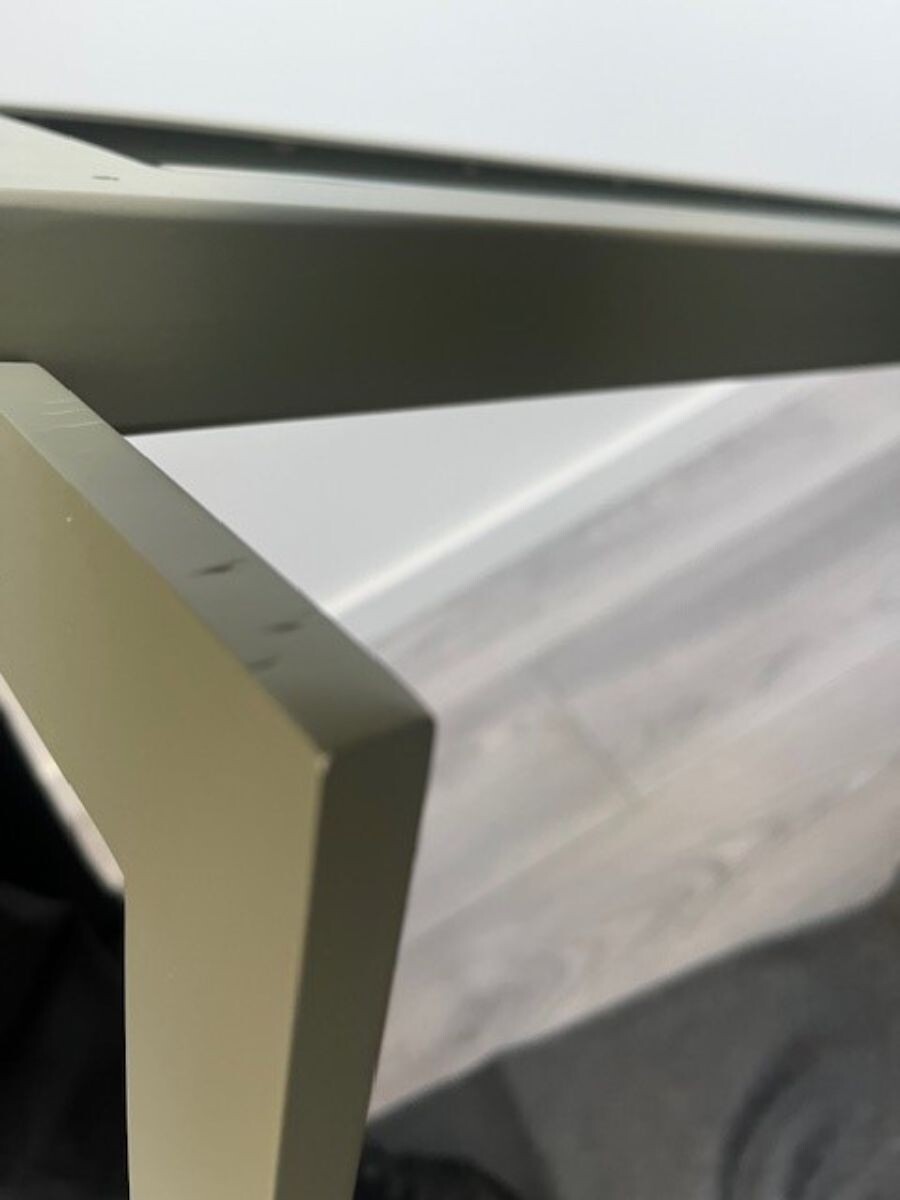 - mit diversen Macken und Dellen an Korpus, Rahmen und Gestell