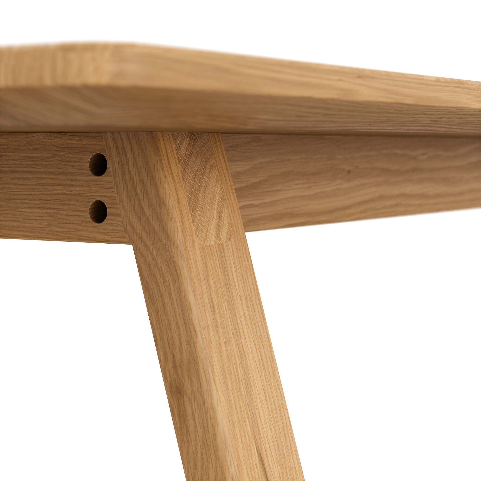 Die B2 Bank von Andersen Furniture zeigt dänisches Design in seiner schönsten Form: reduziert, funktional und präzise gearbeitet. Gefertigt aus massiver Eiche überzeugt sie mit einer ruhigen Ausstrahlung und klaren Linien. Die schräg zulaufenden Beine und die sichtbaren Verbindungen betonen das handwerkliche Detail und verleihen der Bank eine elegante Leichtigkeit.