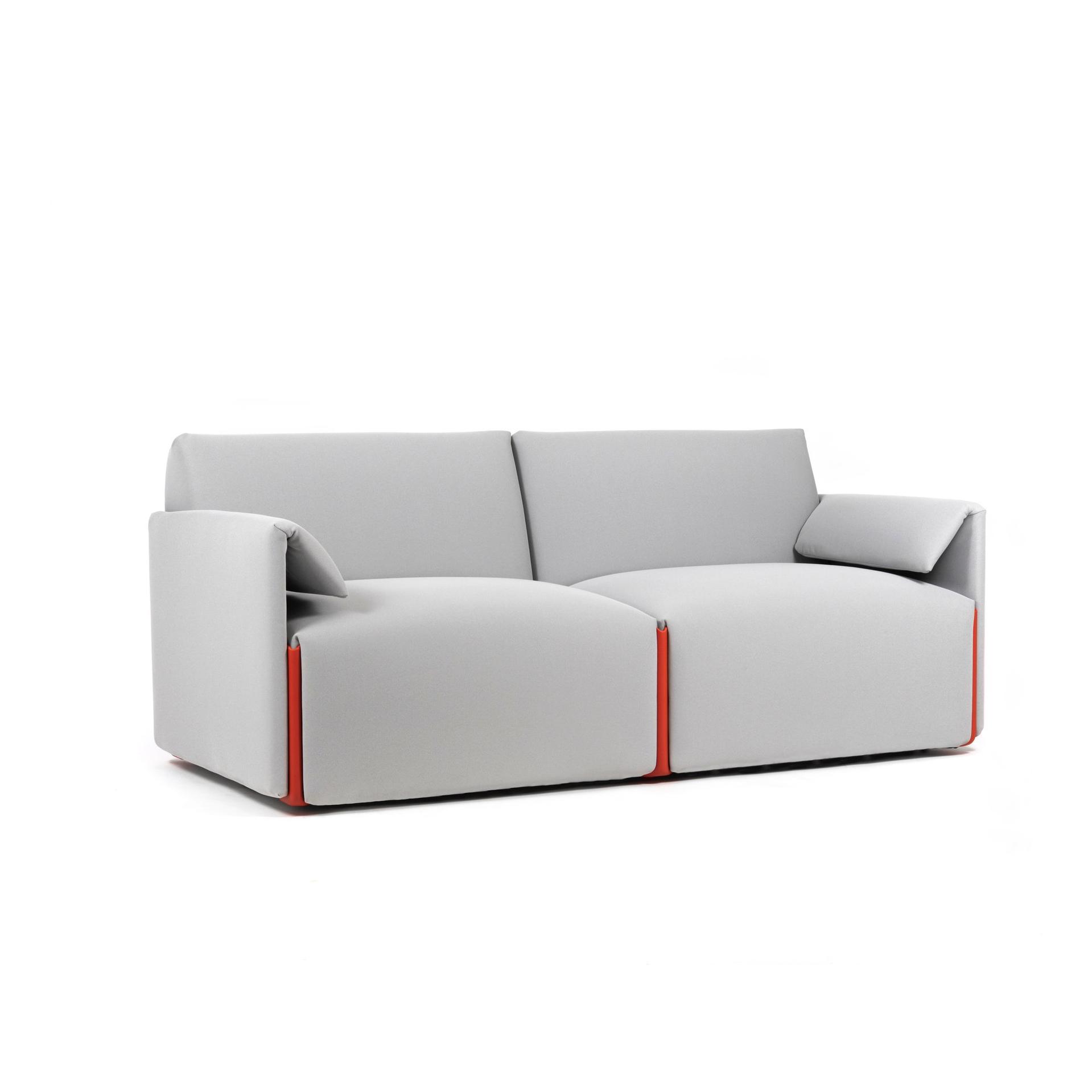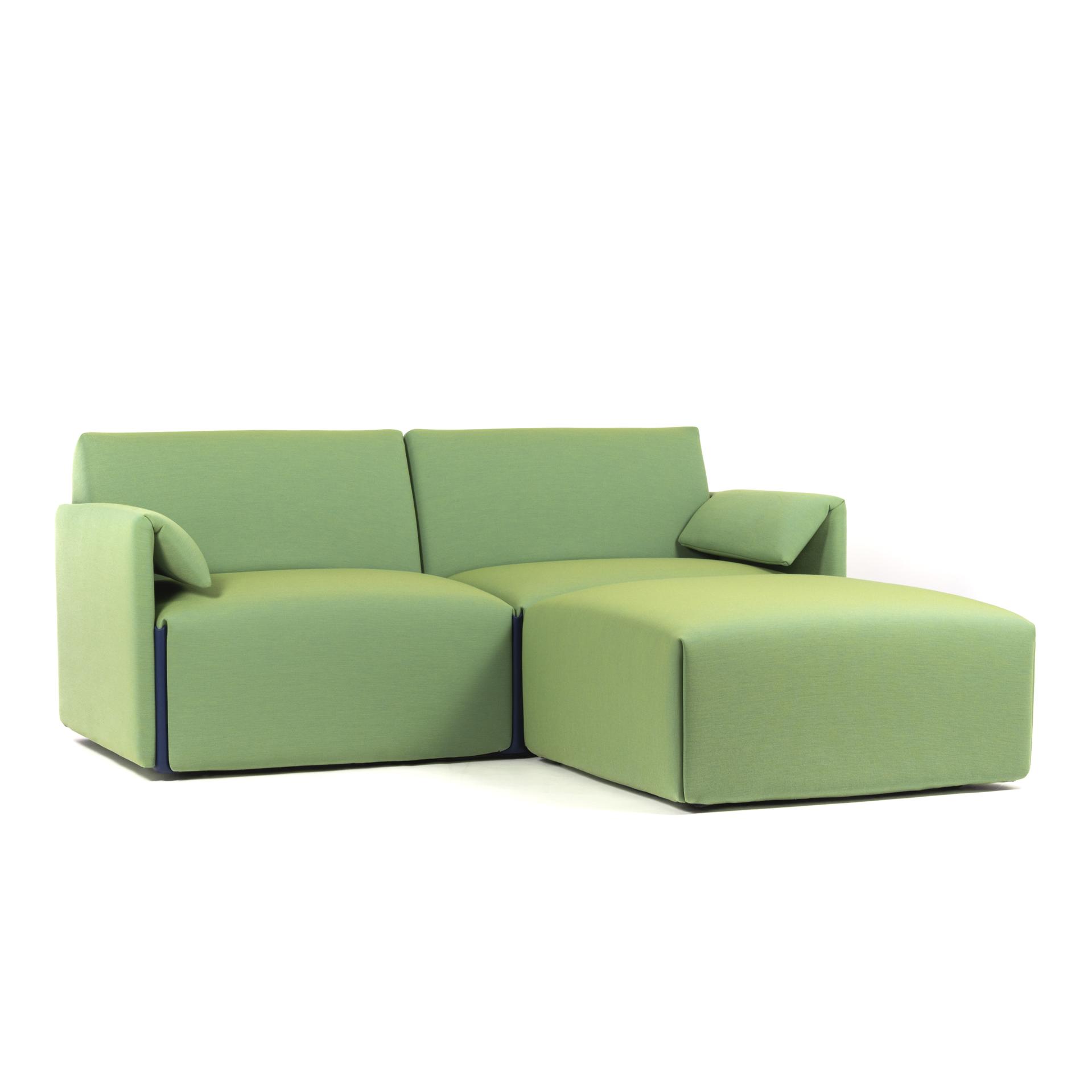 Das modulare Sofa Costume von Stefan Diez für Magis besteht aus nur einem Element. Durch das Ergänzen von Armlehnen und Ottomanen sind viele Konfigurationen möglich. Der Bezug ist Dank der eingehängten elastischen Schlaufen leicht abziehbar.