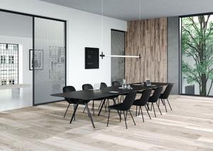 - Massivholz Eiche geflammt, geölt in Kombination mit einem Aluminium-Rahmen