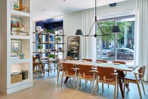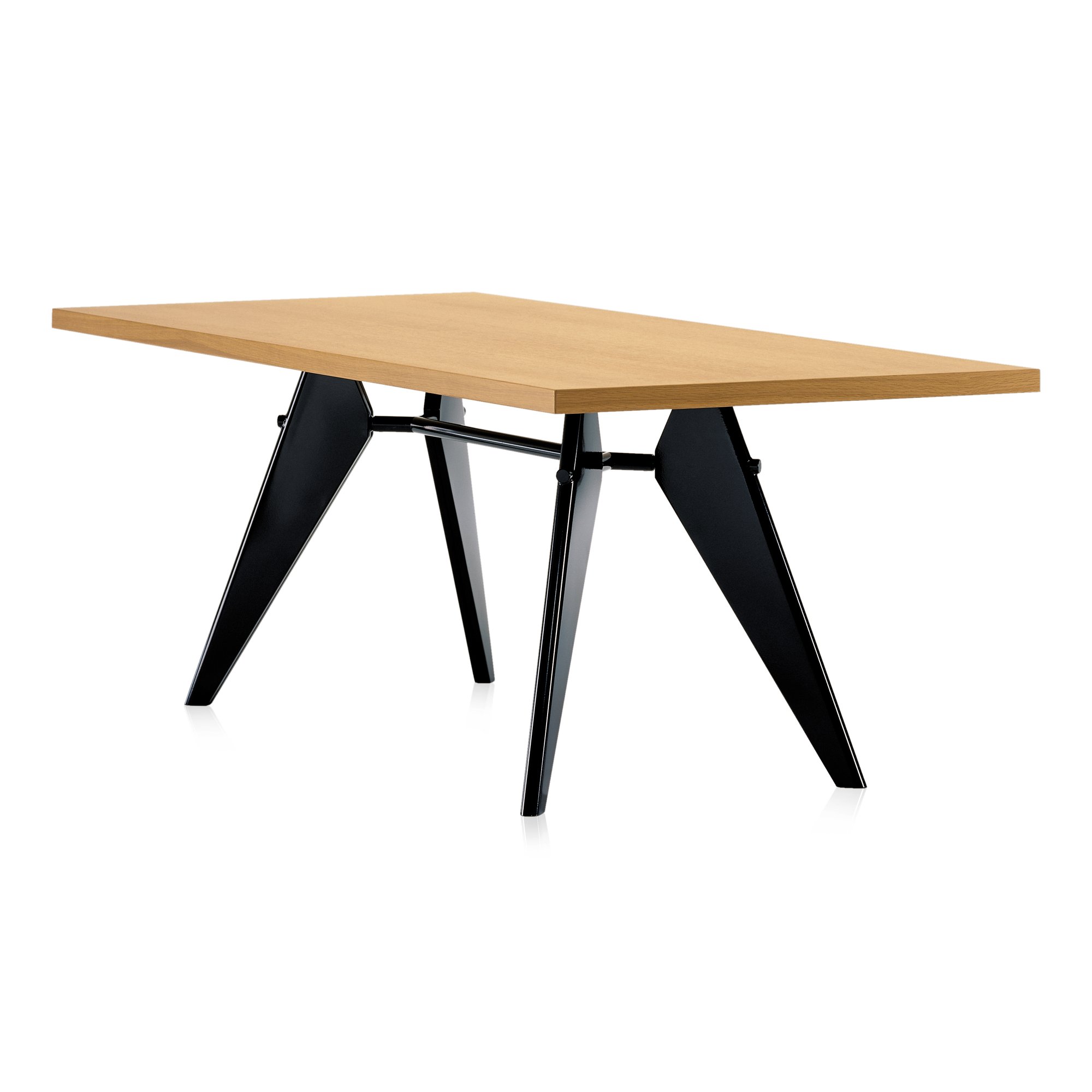 Anfang der 1950er-Jahre entwickelte der Designer und Konstrukteur Jean Prouvé den Tisch EM für das Projekt „Maison-Tropique“. Dieser bis ins kleinste Detail durch seine Konstruktion geprägte Tisch folgt einer Ästhetik der Notwendigkeit: die über eine Traverse verbundenen Beine illustrieren den Kräfteverlauf und die statischen Zusammenhänge auf eine Weise, wie man sie sonst nur von Ingenieurbauten kennt. Auf diese Weise hat Jean Prouvé schlichte und doch ikonische Entwürfe geschaffen. Diesen Vitra-Tisch mit seinem charakteristischen Untergestell aus umgeformtem Stahlblech gibt es in fünf Größen.