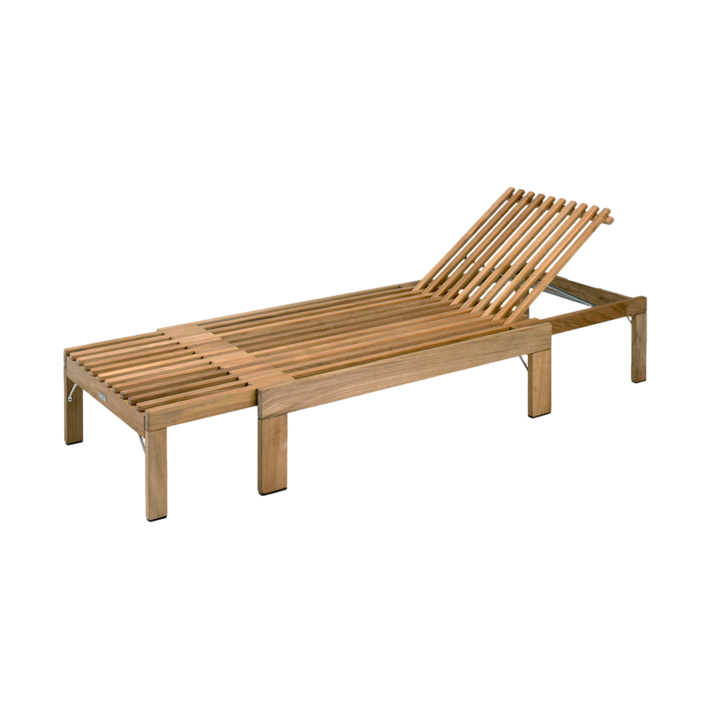 Eine Sonnenliege, eine Bank oder ein Beistelltisch – Riviera vereint drei Funktionen. Wie das geht? Das Möbel besteht aus drei Elementen, die dank Gitterprinzip ineinandergeschoben werden können. So lässt sich die Liegefläche, die Bank- oder Tischlänge zwischen 115 Zentimetern und 202 Zentimetern variabel anpassen. Zusätzlich ist auch die Kopfstütze der Liege in ihrem Winkel verstellbar. Aus Teak gefertigt, ist Riviera ein robustes, zuverlässiges Möbel für den Garten.