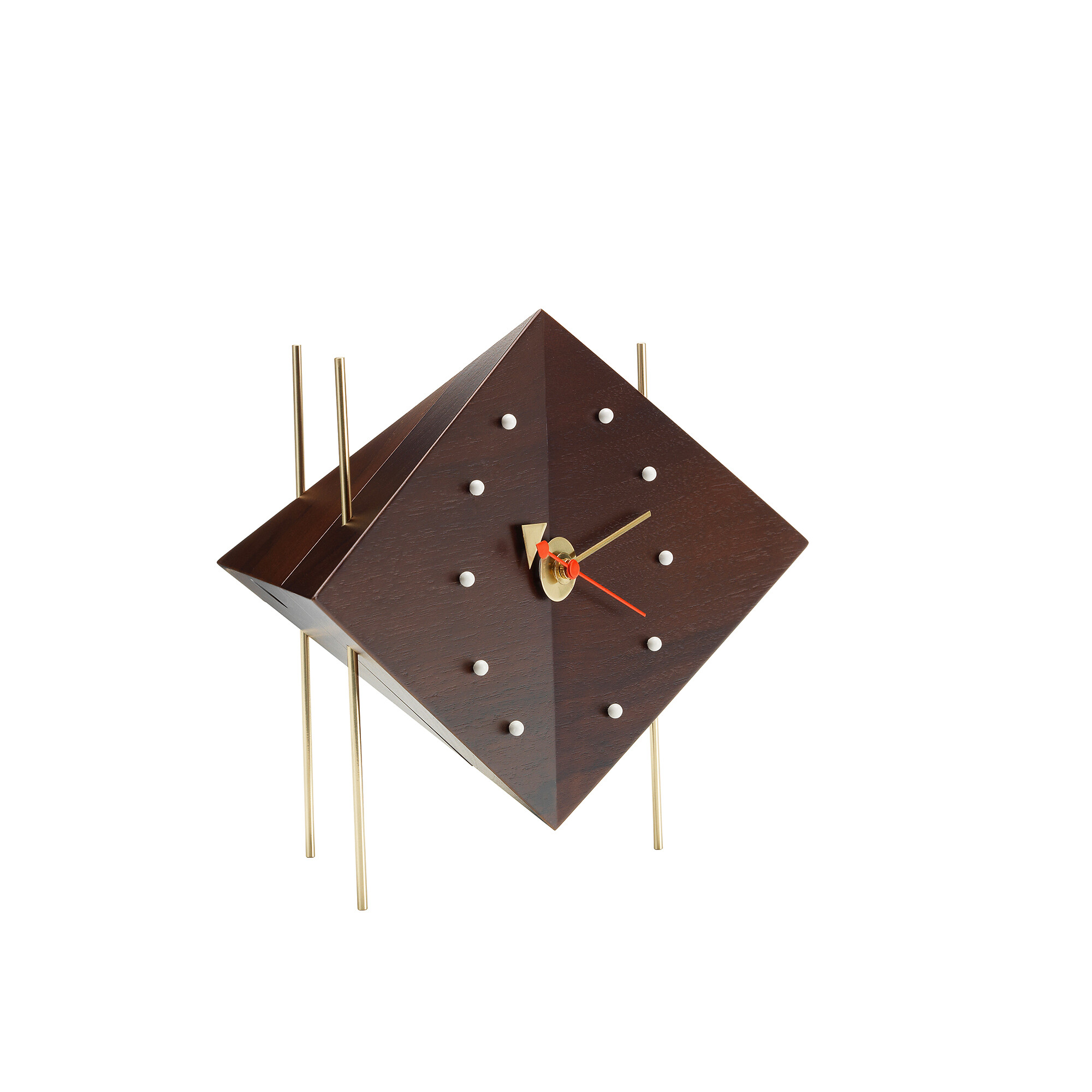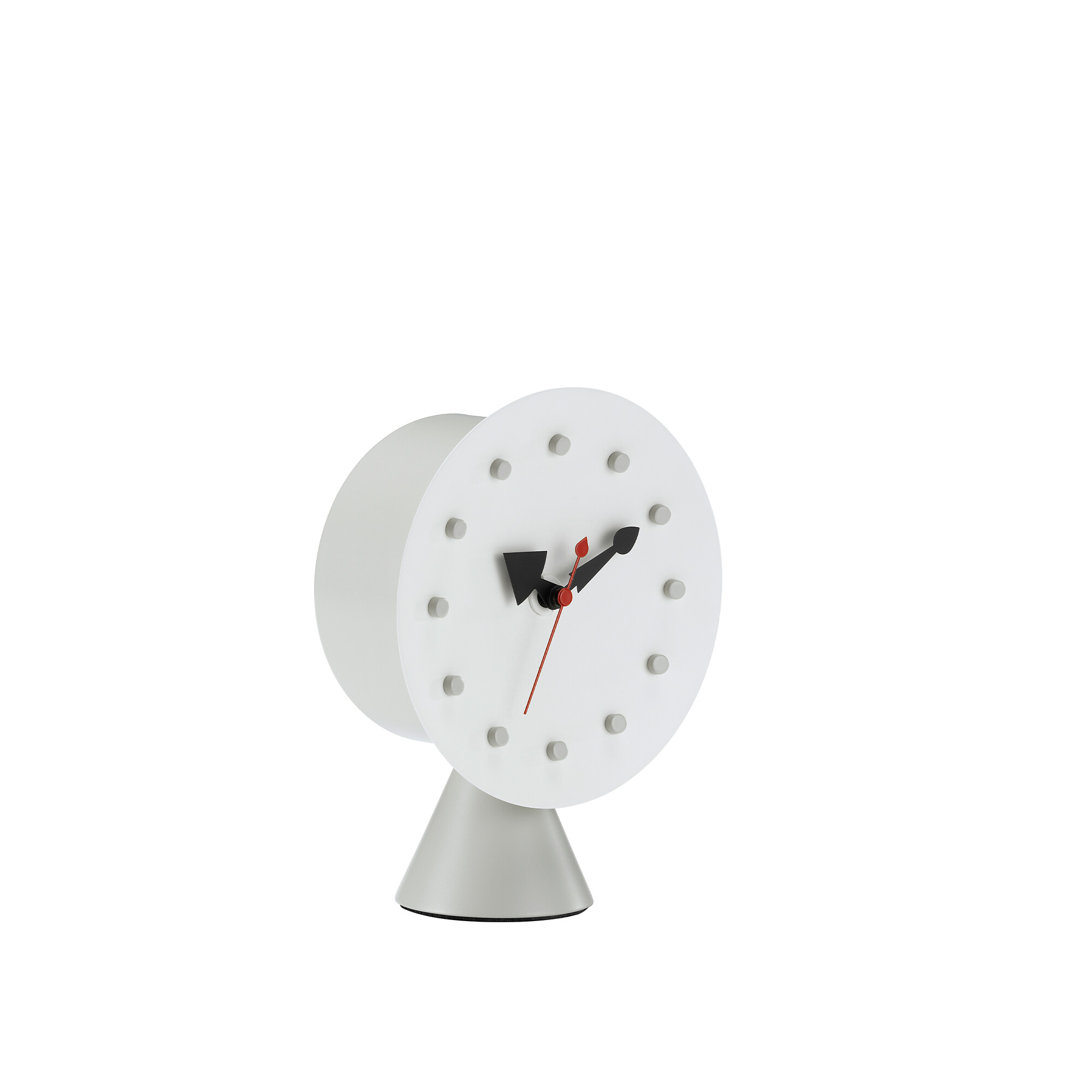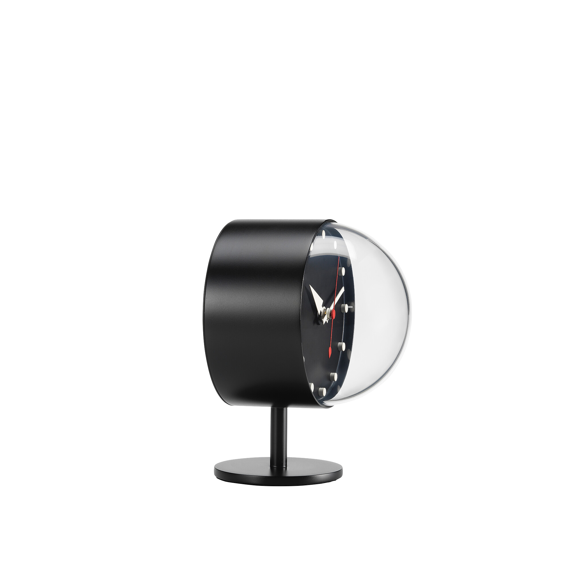 Bis in die 1970er Jahre entwarf George Nelson gemeinsam mit seinem Designbüro verschiedenste Uhren-Modelle, darunter auch die „Desk Clocks“. Auf dem Tisch machen die Uhren, dank modernem Quarz-Uhrwerk, genau das was sie sollen und sind zudem designtechnisch ein echter Hingucker. Vitra stellt die Uhren, welche zu Ikonen des Designs der 1950er-Jahre avancierten, nach den Entwürfen George Nelson's her.