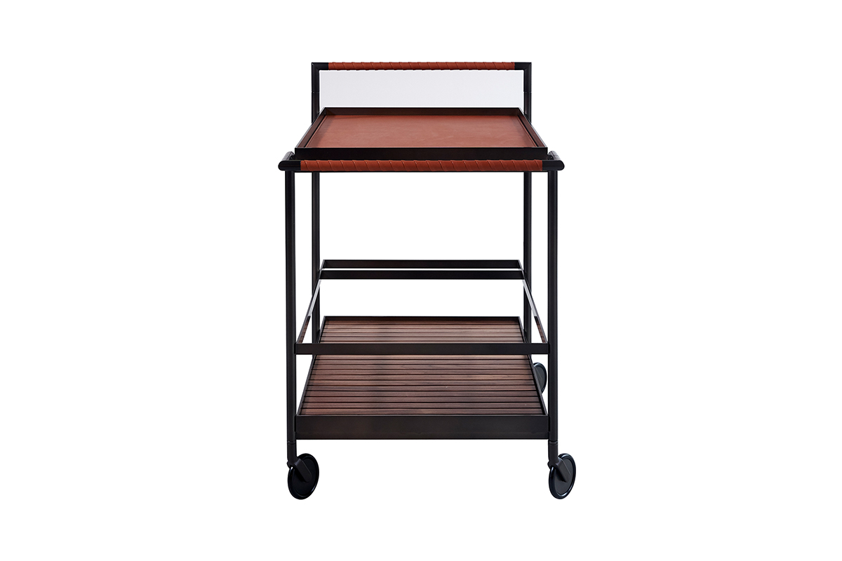 Servierwagen sind nicht nur praktisch, sie können auch stilvolle Akzente setzen - so wie der Barwagen Harri. Die Lederapplikationen bekommen im Gebrauch eine schöne Patina. Das Leder der oberen Platte ist in zwei Farbtönen erhältlich.