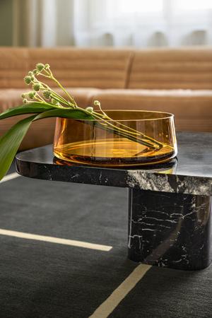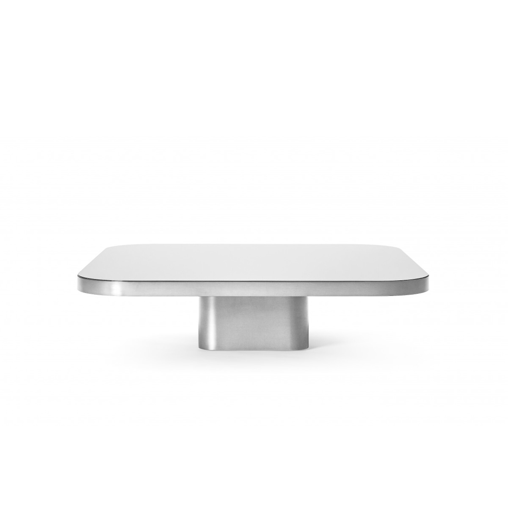 Über einem Sockel mit gerundeten Ecken schwebt die mit Glas oder Marmor belegte Tischplatte. Die fünf Größen sind so aufeinander abgestimmt, dass die Tische einzeln oder als Gruppe, auch mit einander überschneidenden Platten, wie eine dynamische Skulptur arrangiert werden können. Es entsteht eine großzügige Ablagefläche auf mehreren Ebenen.