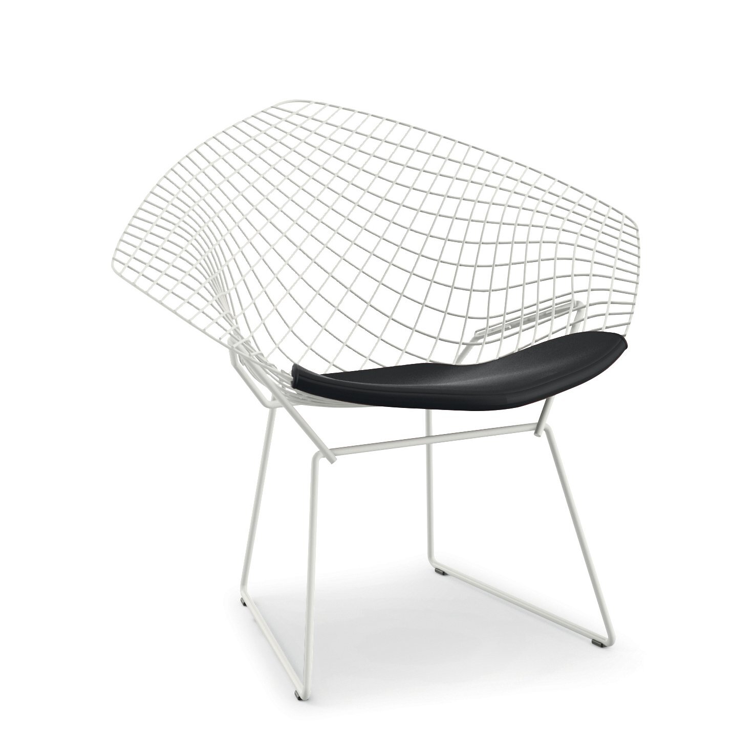 Der Bertoia Diamond Sessel ist vor allem für den Innenbereich gedacht, jedoch sind auch spezielle Outdoormodelle erhältlich. Die Standardausführung kommt ohne Polster, diese können jedoch separat erworben werden, um zusätzlichen Komfort zu bieten. Mit seiner zeitlosen Eleganz bleibt der Bertoia Diamond Sessel ein Designklassiker, der modernes Wohnen stilvoll bereichert.