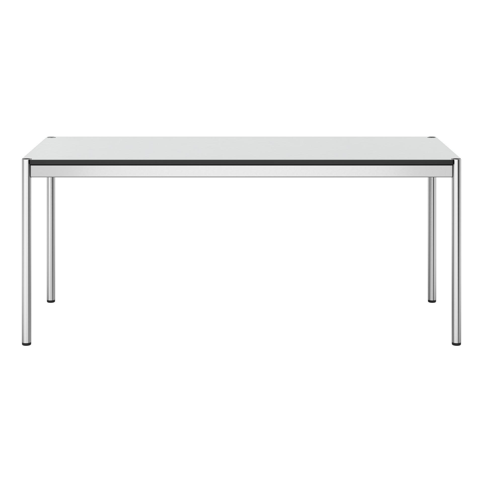 Beine und Zargen des USM Haller Tischs sind immer aus verchromtem Stahlrohr gefertigt, die Tischplatte wahlweise in den Ausführungen Kunstharz perlgrau, Linoleum nero oder MDF reinweiß. Mit verschiedenen Accessoires lässt sich der Tisch von USM genau Ihren Bedürfnissen anpassen. Hierzu beraten wir Sie gerne. Ob als repräsentativer Schreibtisch im Büro oder als Esstisch, USM Haller Tische sind immer eine gute Wahl.