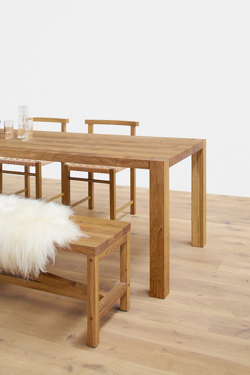 Esstisch Holborn aus dem Jahre 2015 ist eine moderne Neuinterpretation des klassischen Bigfoot Tisches. Die durchstoßenen Tischbeine und das naturbelassene Holz erinnern an sein Design-Vorbild.