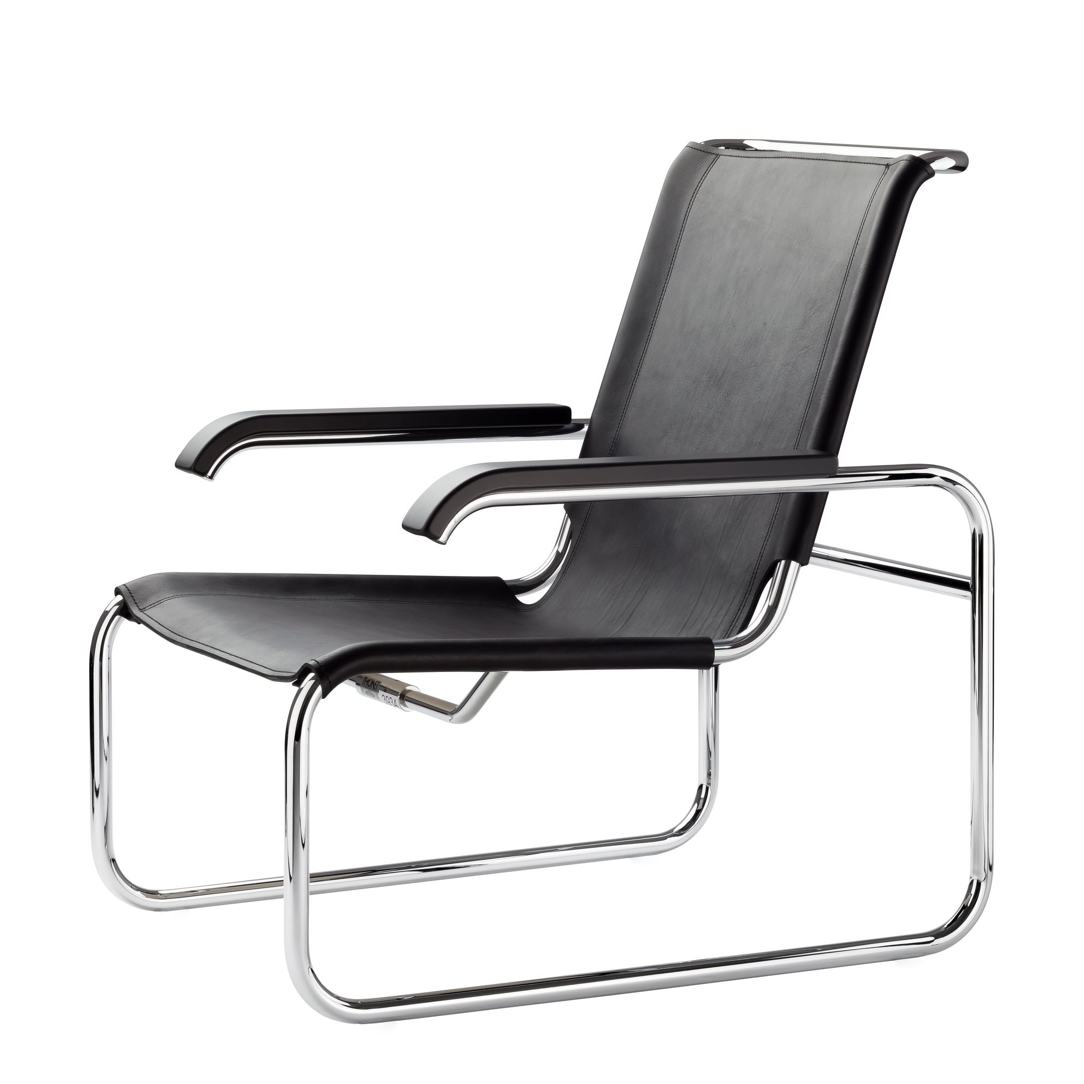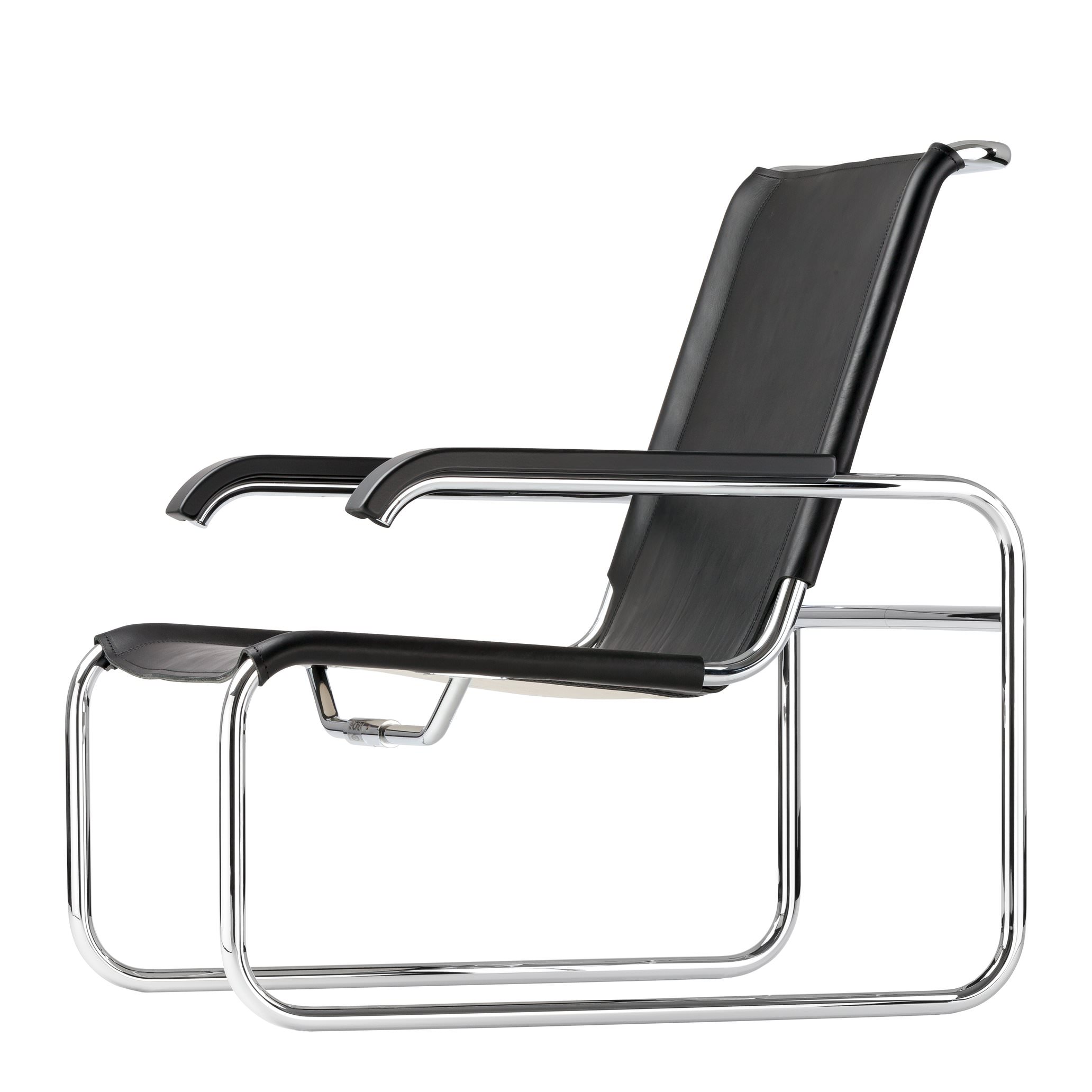 Mit dem S 35 ist es Marcel Breuer gelungen, alle Funktionen eines frei schwingenden Stahlrohrsessels in der Konstruktion einer einzigen durchgehenden Linie aufzunehmen. Dadurch entstand eine Dopplung des Freischwinger-Effekts, denn die unabhängig vom Sitz federnden Armlehnen balancieren das Schwingen des nach hinten auskragenden Sitz- und Rückengestells aus. Dazu gibt es einen passenden Fußhocker.