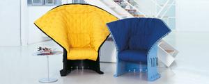 Der Feltri Sessel von Gaetano Pesce war einer der ersten Highback Sessel, die heute aus der Büroflächenplanung nicht mehr wegzudenken sind. Zu der hohen Variante fertigt Cassina den Sessel inzwischen auch mit niedrigem Rücken.