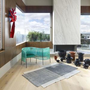 In Santa Marta an der kolumbianischen Karibikküste werden Möbel in der "momposino" Webtechnik hergestellt. Auf dieser Basis hat Sebastian Herkner Caribe entworfen. Jedes Möbel ist handgefertigt. Die Kunststoff-Fäden sind robust und doch flexibel. So ermöglichen sie gemütliches Sitzen und die Farbvielfalt macht gute Laune.