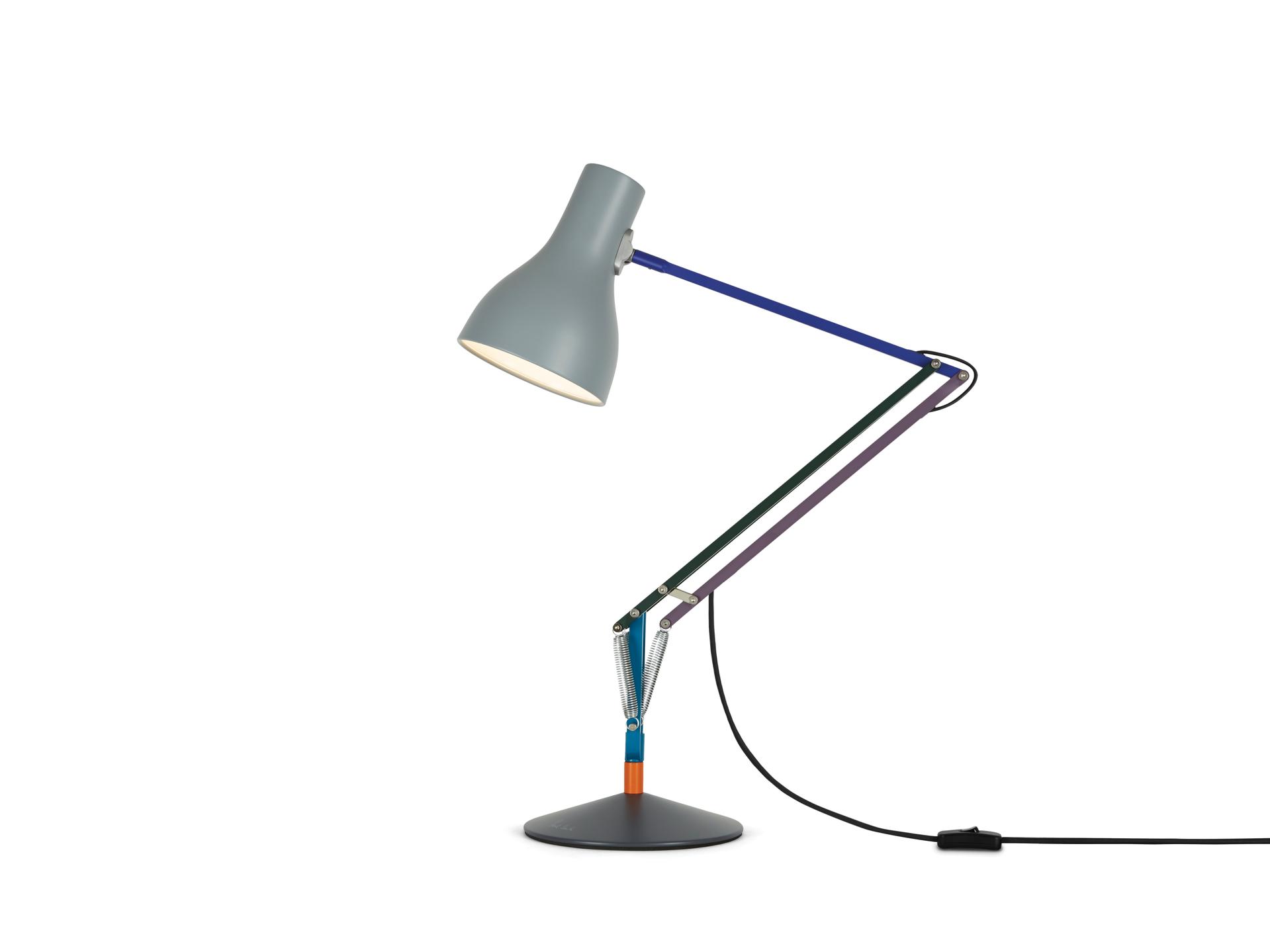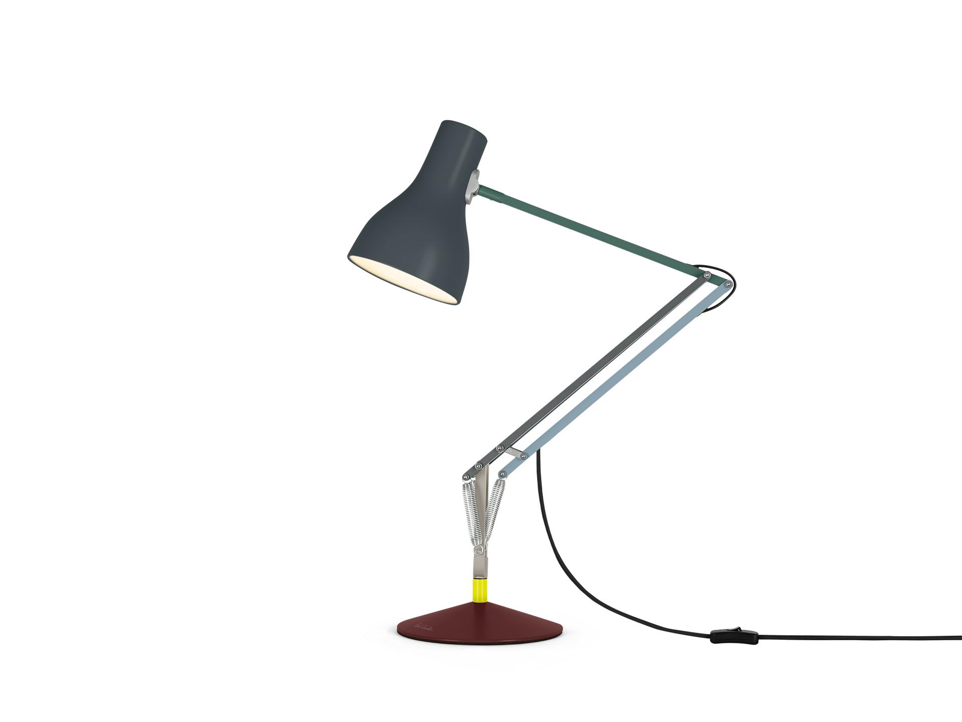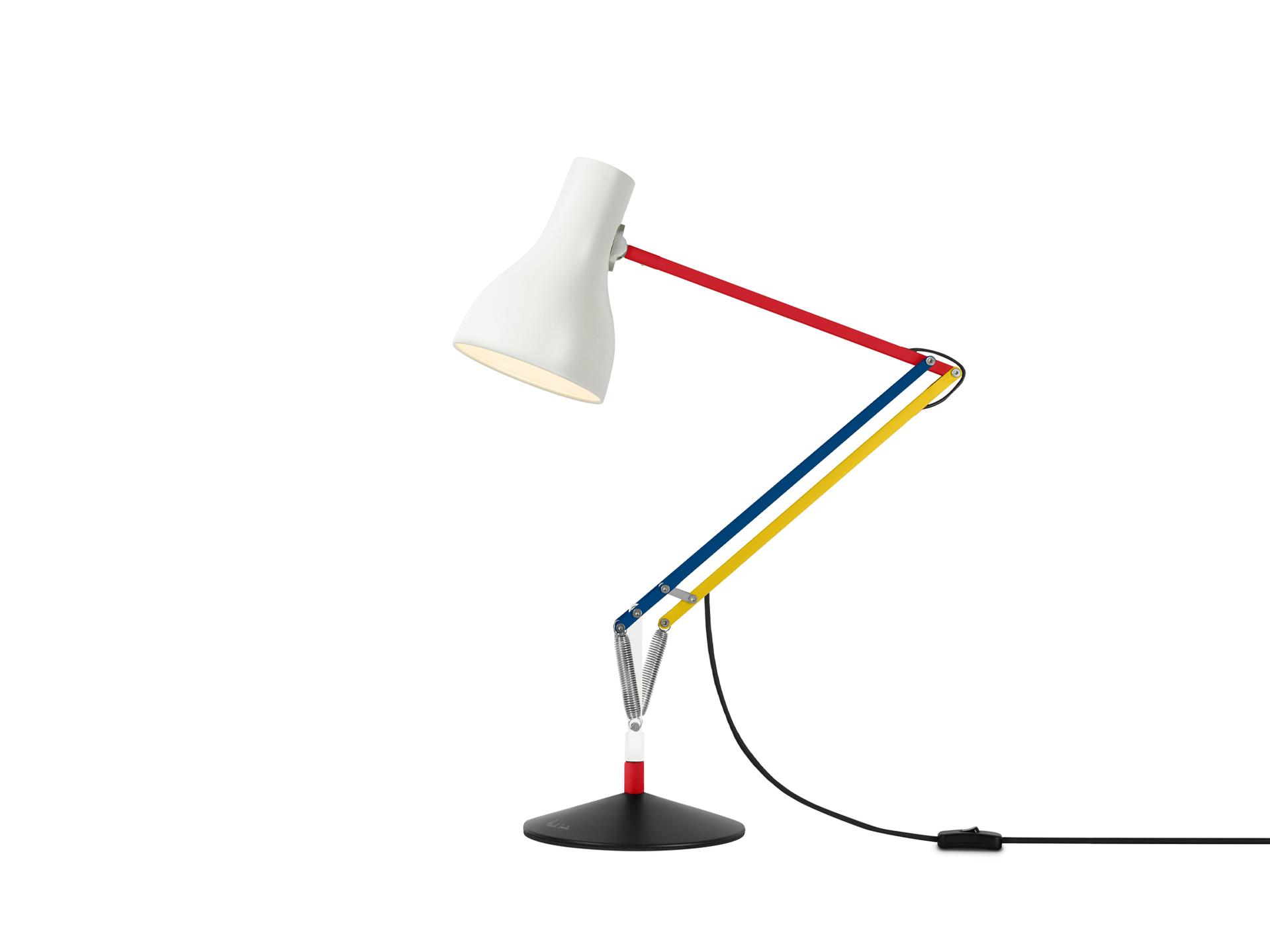 Die Formensprache der Type 75 geht auf einen Entwurf von George Carwardine aus den 30er-Jahren zurück, an dem sich die Designikone Sir Kenneth Grange mit seiner Neuinterpretation orientierte. Der britische Modedesigner hält an Granges Design fest und frischt es mit drei neuen Farbausführungen auf. Dabei ließ er sich von den Arbeiten der niederländischen Künstlergruppe De Stijl inspirieren und gab jedem Bauteil der Leuchte eine eigene, einprägsame Farbe. Zusätzlich zu der modernen Farbgestaltung überzeugt die Paul-Smith-Edition mit dem klassischen Anglepoise-Federzugsystem.